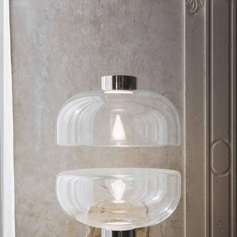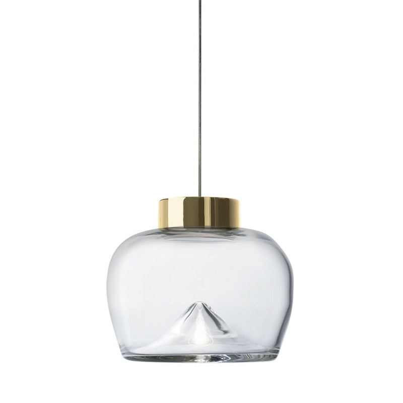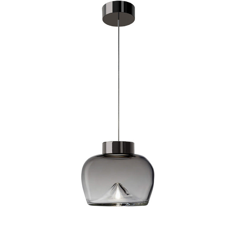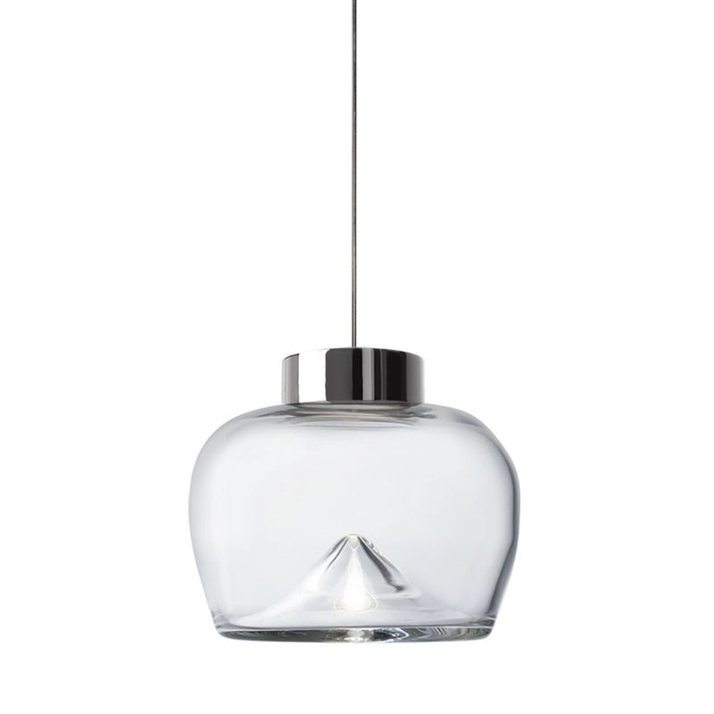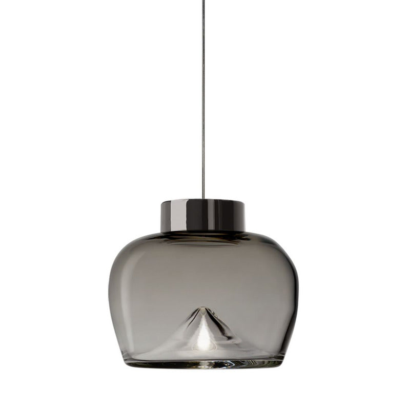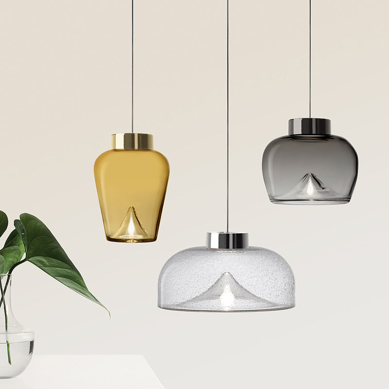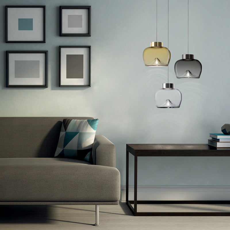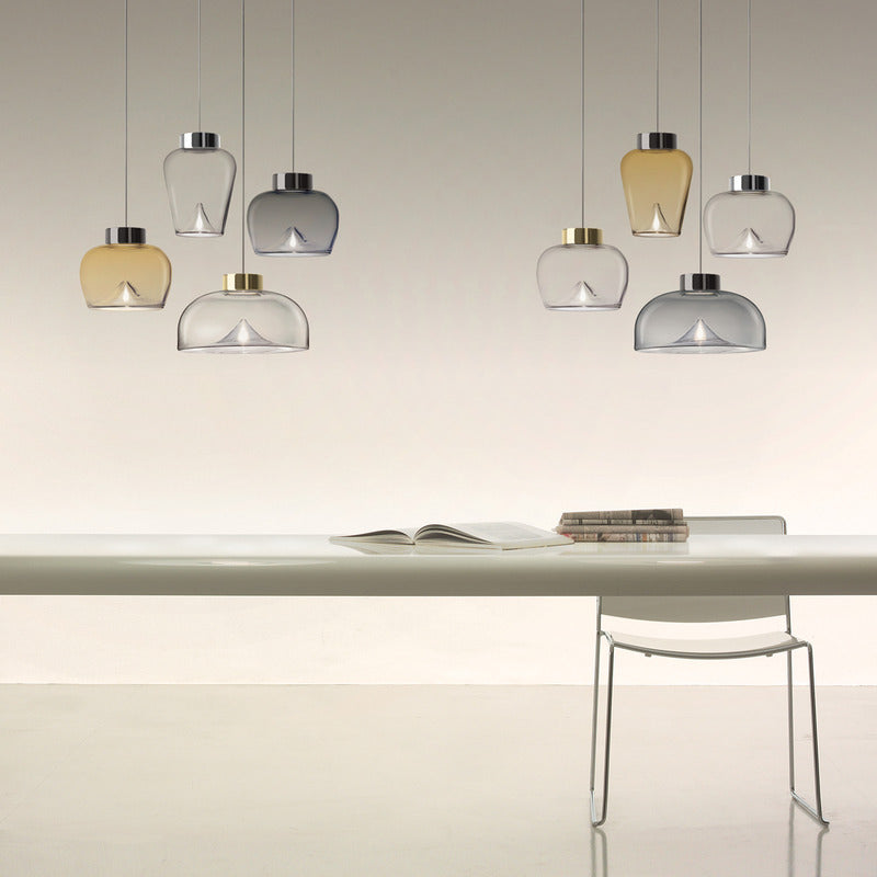 Aella, the Ancient Greek word for whirlwind, was the first Amazon warrior who lunged at Heracles. Gaining inspiration from this, Toso & Massari designed the Aella Table Lamp in 1968. In 2016, the original designers, reimaged the classic Aella shape as a pendant, ceiling lamp and wall lamp. In 2017, the designers reshaped the icon glass vortex into three new sizes and shapes, Aella Bold, Aella Thin and Aella Mini. To this day, the Aella captures the essence of a whirlwind in hand blown glass and creates a stunning vortex of light floating in the diffuser. This vortex of light represents Leucos's vision of taking tradition hand crafted techniques and giving them a fresh contemporary point of view. The Aella is available as a table lamp, a pendant, a ceiling lamp and a wall lamp as well as in various shapes and sizes (Aella Mini 30, Aella Mini 25, Aella 1968 Classic, Aella Bold and Aella Thin. The Aella Mini, Bold and Thin suspension can be custom ordered in groups of 3.
