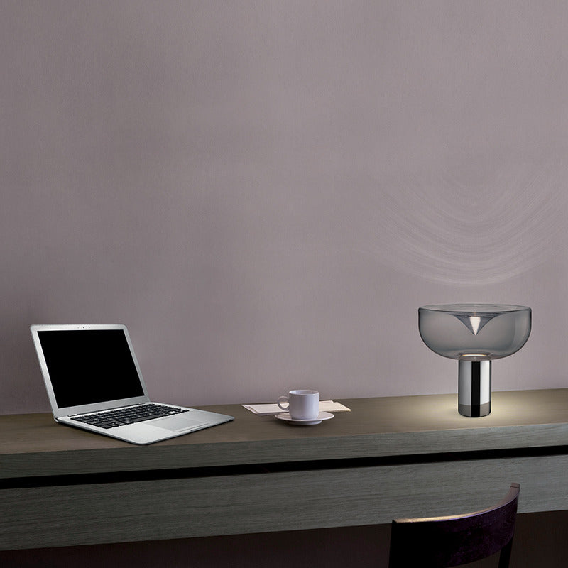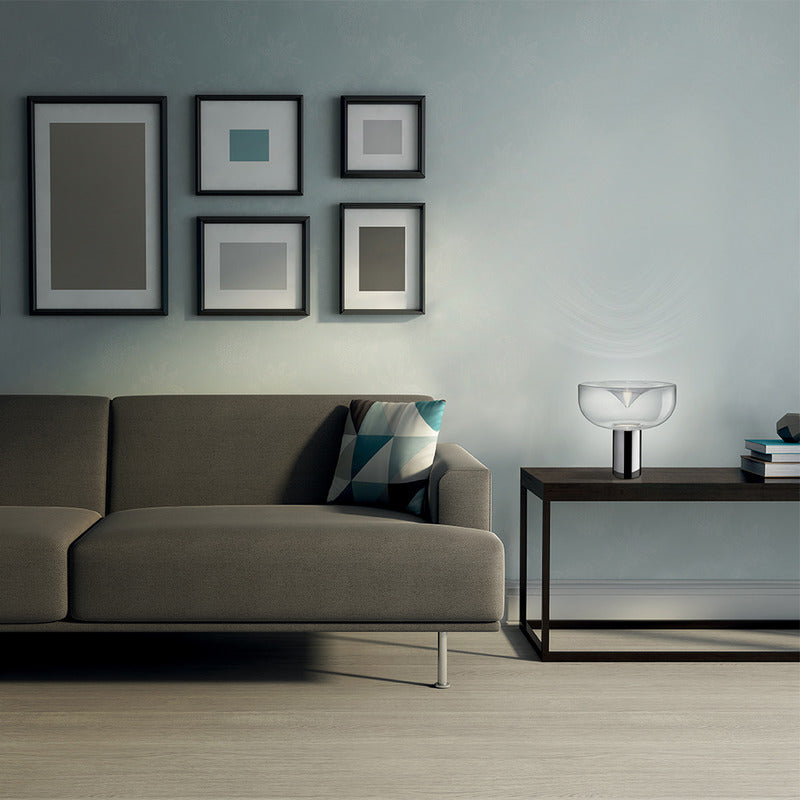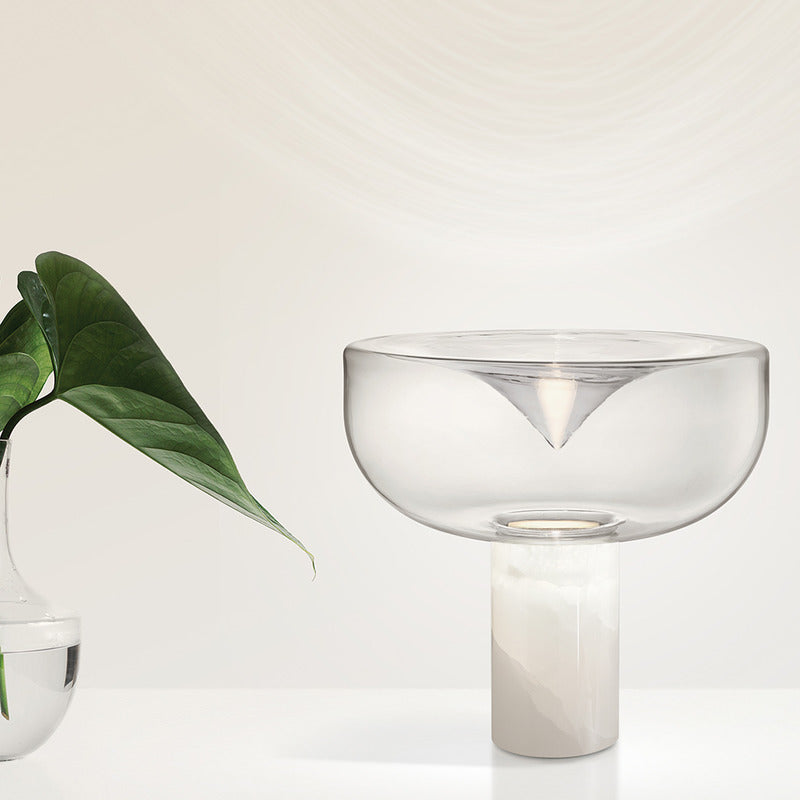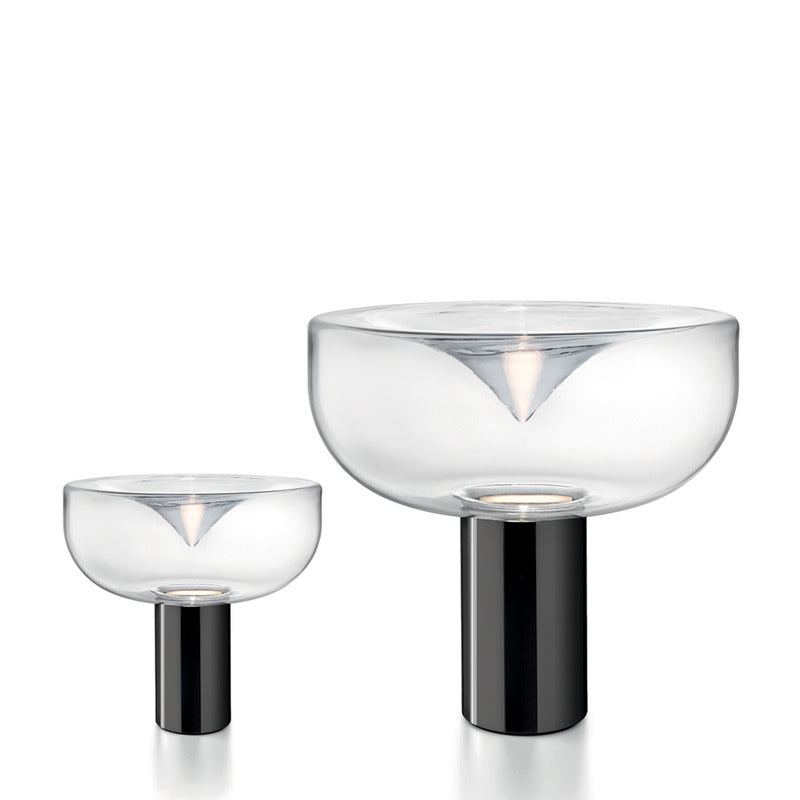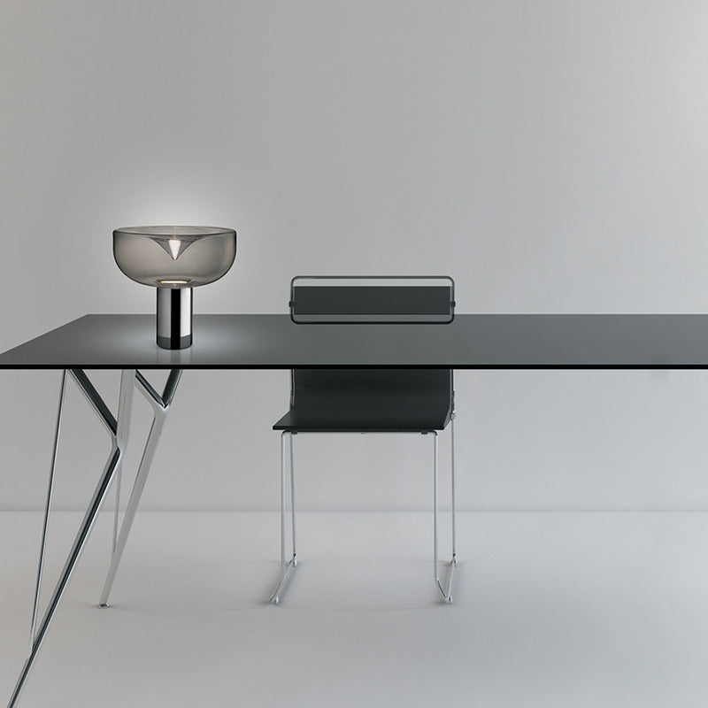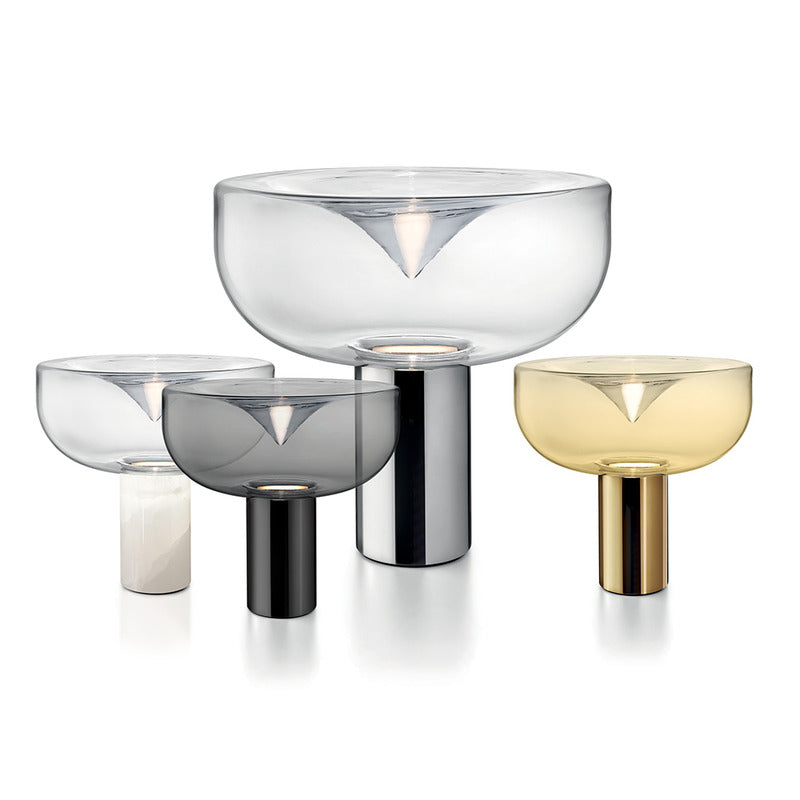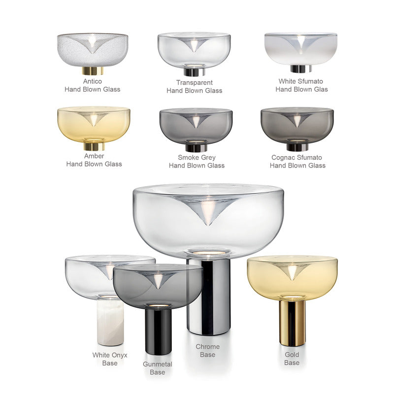 Aella, the Ancient Greek word for whirlwind, was the first Amazon warrior who lunged at Heracles. Gaining inspiration from this, Toso & Massari designed the Aella Table Lamp in 1968. In 2016, the original designers, reimaged the classic Aella shape as a pendant, ceiling lamp and wall lamp. In 2017, the designers reshaped the icon glass vortex into three new sizes and shapes, Aella Bold, Aella Thin and Aella Mini. To this day, the Aella captures the essence of a whirlwind in hand blown glass and creates a stunning vortex of light floating in the diffuser. This vortex of light represents Leucos's vision of taking tradition hand crafted techniques and giving them a fresh contemporary point of view. The Aella is available as a table lamp, a pendant, a ceiling lamp and a wall lamp as well as in various shapes and sizes (Aella Mini 30, Aella Mini 25, Aella 1968 Classic, Aella Bold and Aella Thin. The Aella Mini, Bold and Thin suspension can be custom ordered in groups of 3.