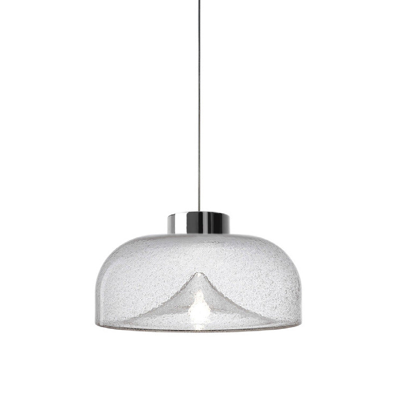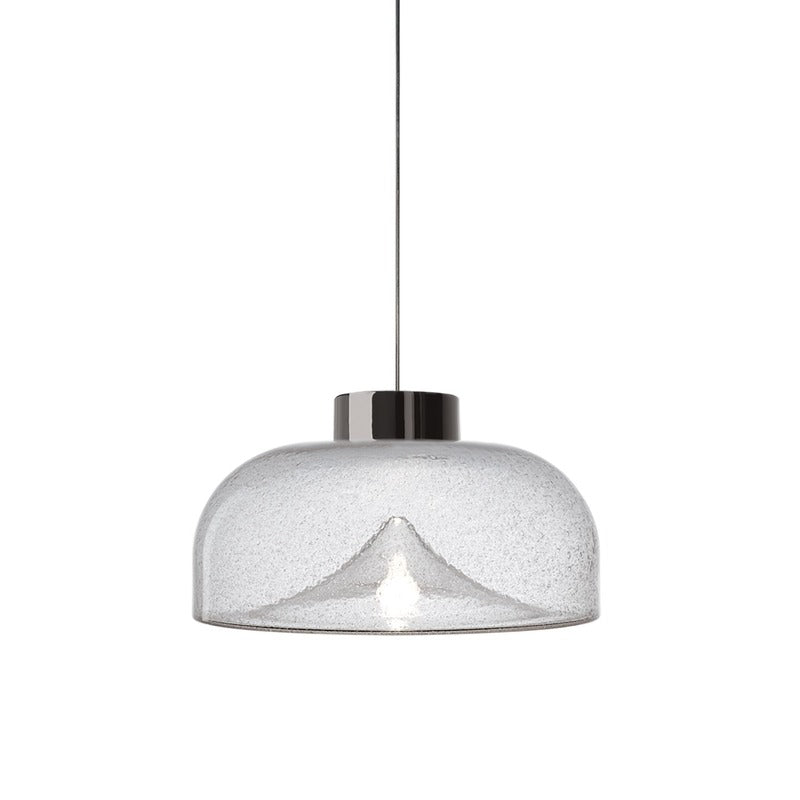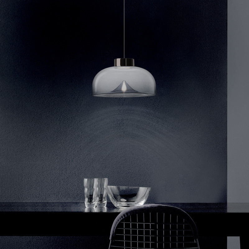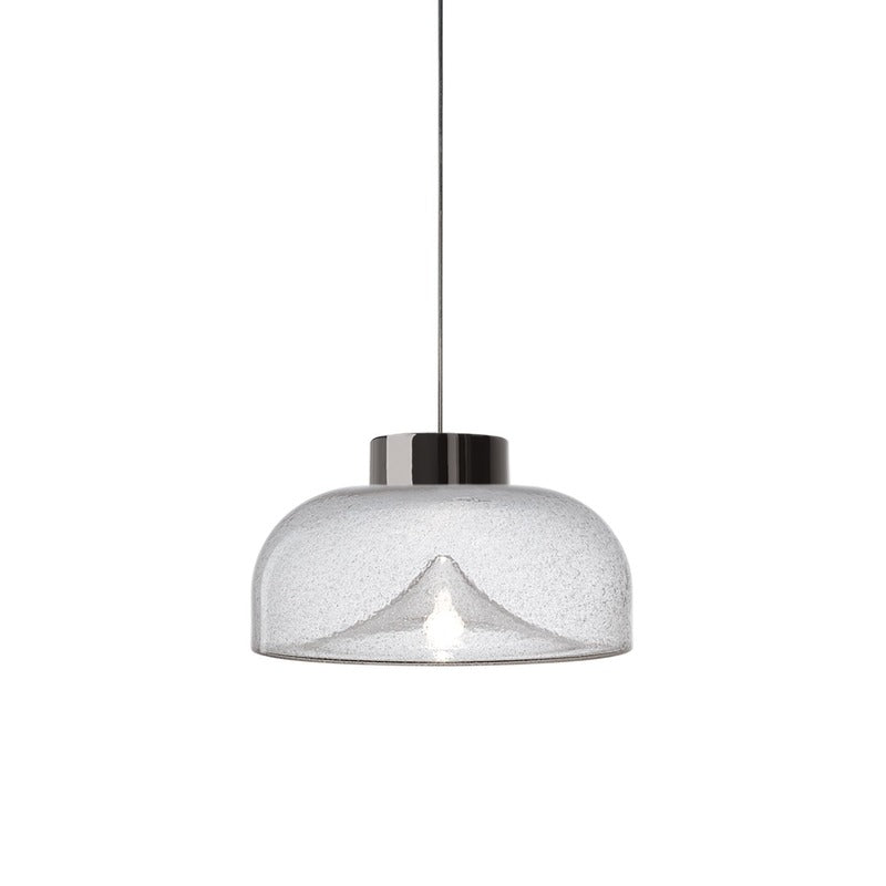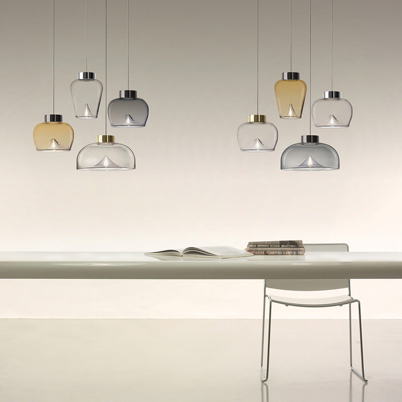 Aella, the Ancient Greek word for whirlwind, was the first Amazon warrior who lunged at Heracles. Gaining inspiration from this, Toso & Massari designed the Aella Table Lamp in 1968. In 2016, the original designers, reimaged the classic Aella shape as a pendant, ceiling lamp and wall lamp. In 2017, the designers reshaped the icon glass vortex into three new sizes and shapes, Aella Bold, Aella Thin and Aella Mini. To this day, the Aella captures the essence of a whirlwind in hand blown glass and creates a stunning vortex of light floating in the diffuser. This vortex of light represents Leucos's vision of taking tradition hand crafted techniques and giving them a fresh contemporary point of view. The Aella is available as a table lamp, a pendant, a ceiling lamp and a wall lamp as well as in various shapes and sizes (Aella Mini 30, Aella Mini 25, Aella 1968 Classic, Aella Bold and Aella Thin. The Aella Mini, Bold and Thin suspension can be custom ordered in groups of 3.