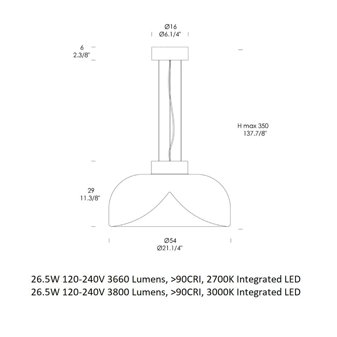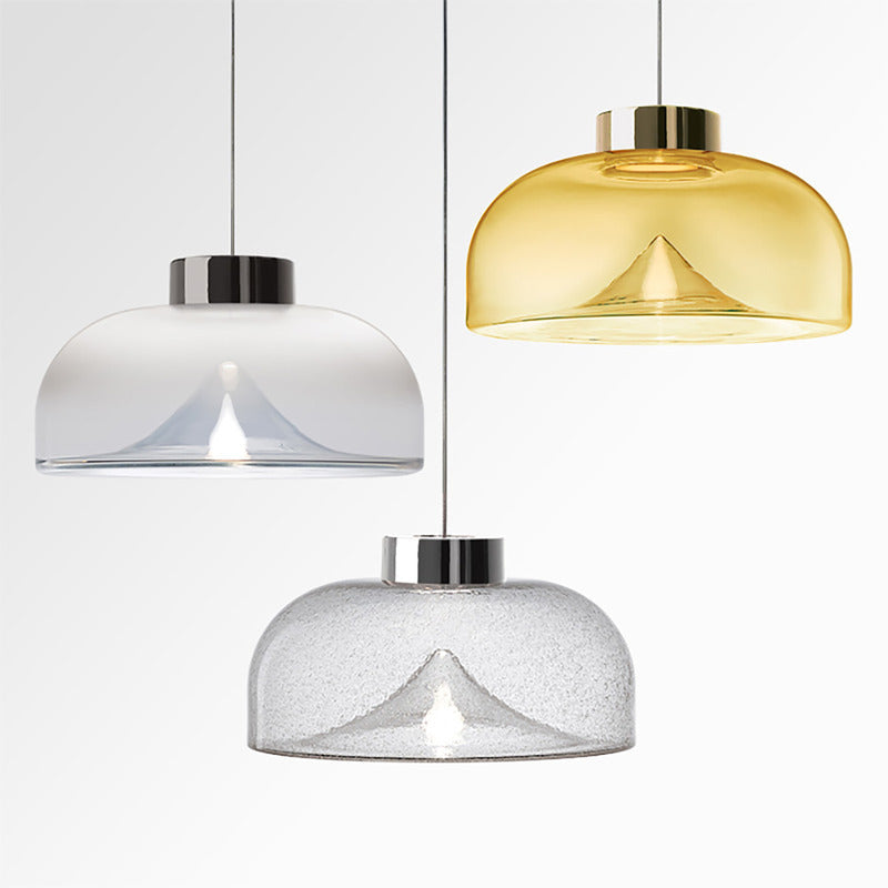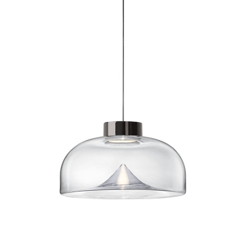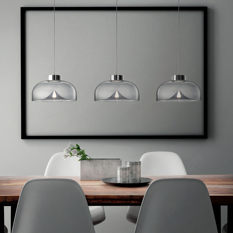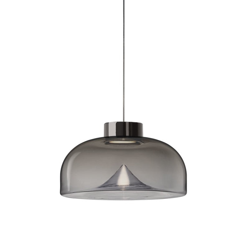 Aella, the Ancient Greek word for whirlwind, was the first Amazon warrior who lunged at Heracles. Gaining inspiration from this, Toso & Massari designed the Aella Table Lamp in 1968. In 2016, the original designers, reimaged the classic Aella shape as a pendant, ceiling lamp and wall lamp. In 2017, the designers reshaped the icon glass vortex into three new sizes and shapes, Aella Bold, Aella Thin and Aella Mini. To this day, the Aella captures the essence of a whirlwind in hand blown glass and creates a stunning vortex of light floating in the diffuser. This vortex of light represents Leucos's vision of taking tradition hand crafted techniques and giving them a fresh contemporary point of view. The Aella is available as a table lamp, a pendant, a ceiling lamp and a wall lamp as well as in various shapes and sizes (Aella Mini 30, Aella Mini 25, Aella 1968 Classic, Aella Bold and Aella Thin. The Aella Mini, Bold and Thin suspension can be custom ordered in groups of 3.