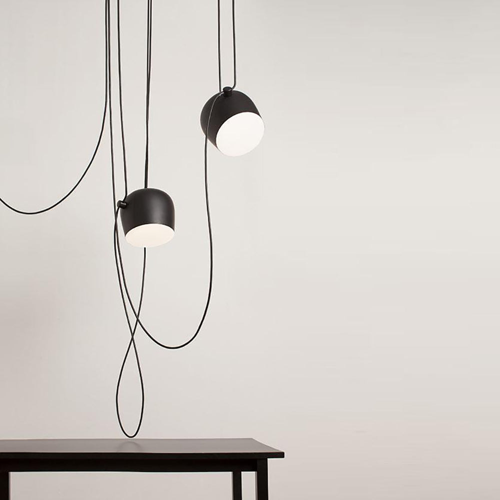 Small is size, but impactful in design, the Aim Small Single Pendant from FLOS offers versatile style ready to illuminate your home. Crafted from aluminum with a polycarbonate shade, this lighting design offers a 354 inch cord allowing you to decide how you would like to suspend and drape your luminary. Ideal for spaces with high ceilings, this pendant is perfect suspended over a kitchen island, expansive dining table, or clustered together in an entryway for a unique lighting design.