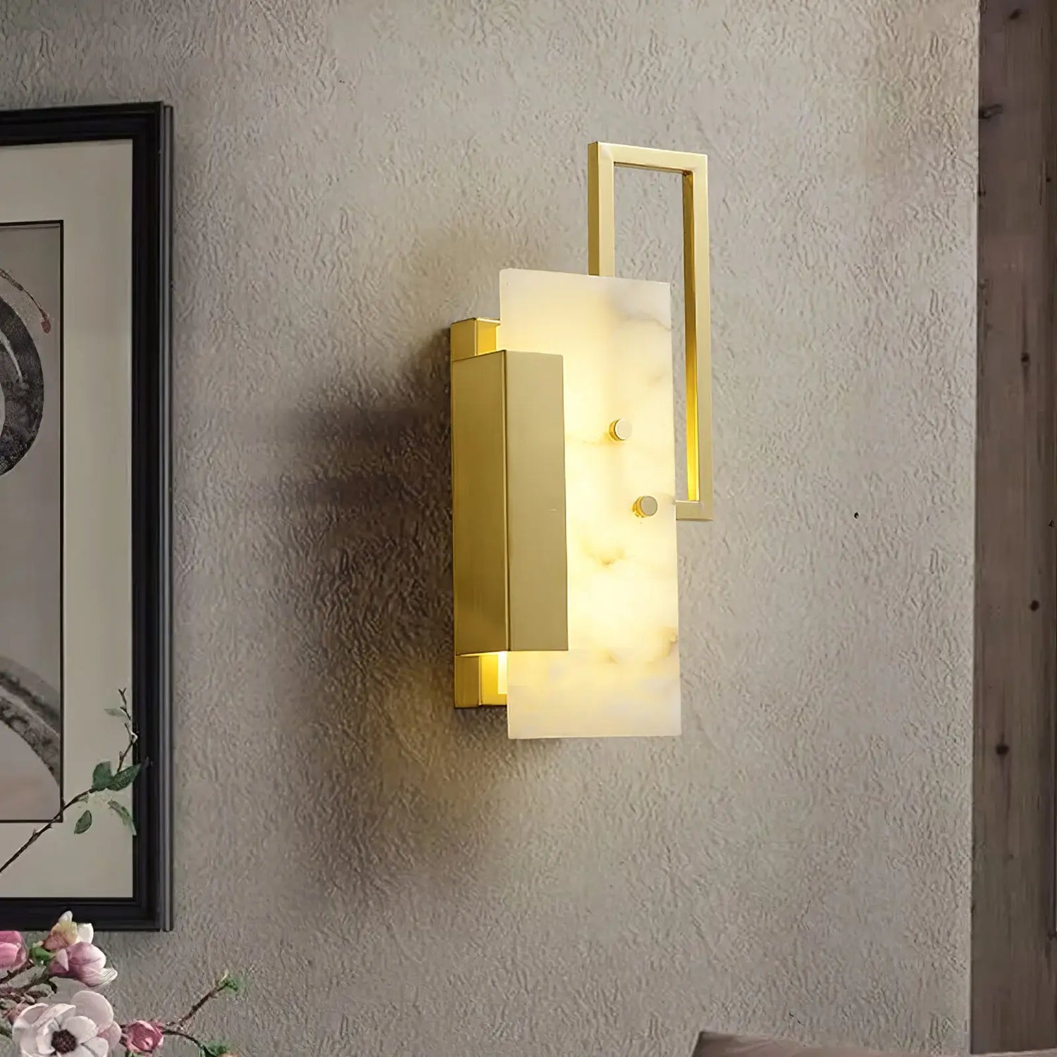 Alabaster Brass Wall Sconce