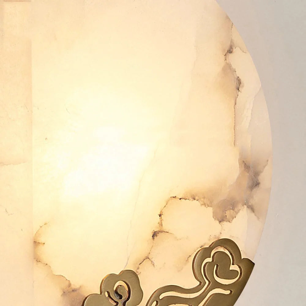 Transform any space with the Alabaster Modern Ando Wall Lamp. The warm, natural glow of the alabaster shade creates a unique and mysterious luminescence, while the brass body adds a touch of classic elegance. This exceptional design piece is not only visually stunning, but also offers sturdy support. A masterpiece of nature in your own home.