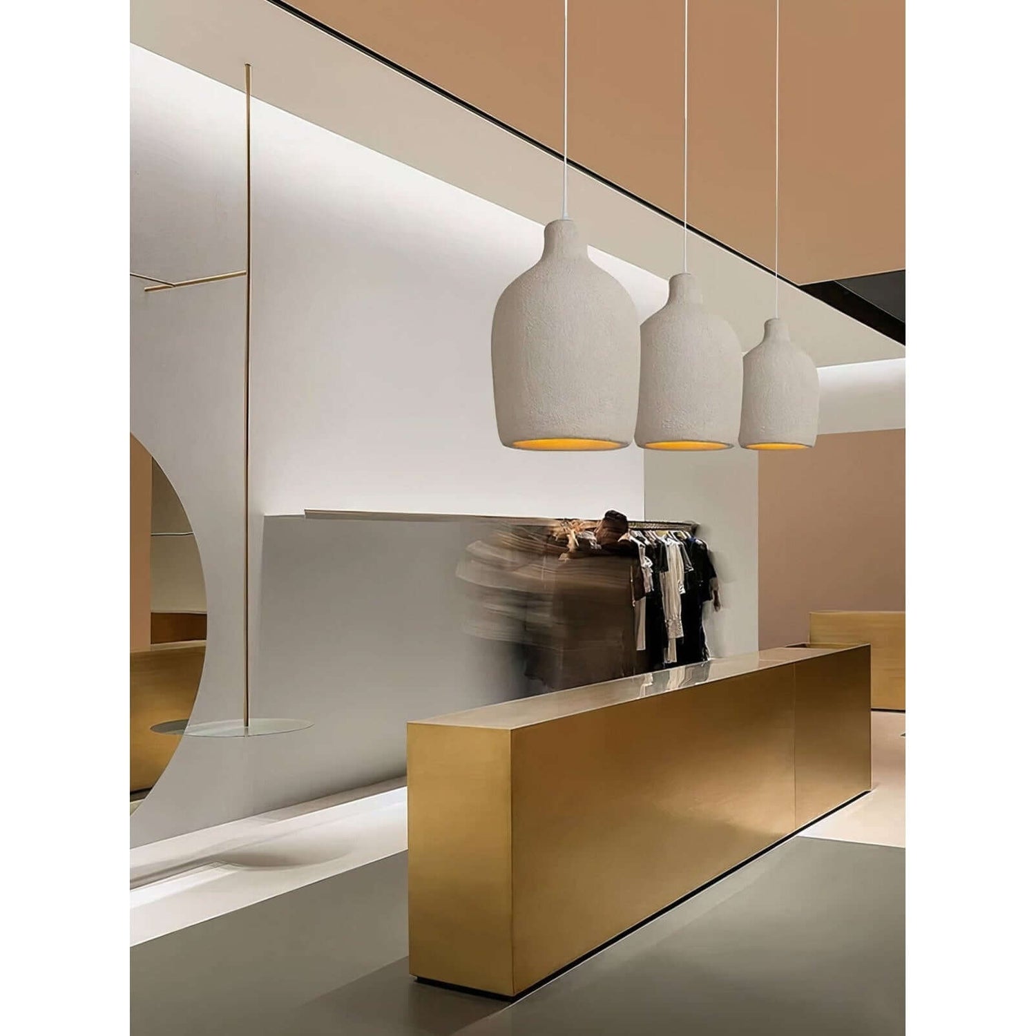 Modernise your space with the elegant Alana pendant light. This stunning statement piece combines a classic silhouette with a minimal and contemporary aesthetic to create a distinctive finish full of character. This high polymer lampshade offers a matte finish for an industrial style, elevated by a luxurious gold interior to bring a warm glow to your space. Perfect for those looking for a simple yet decorative richness.