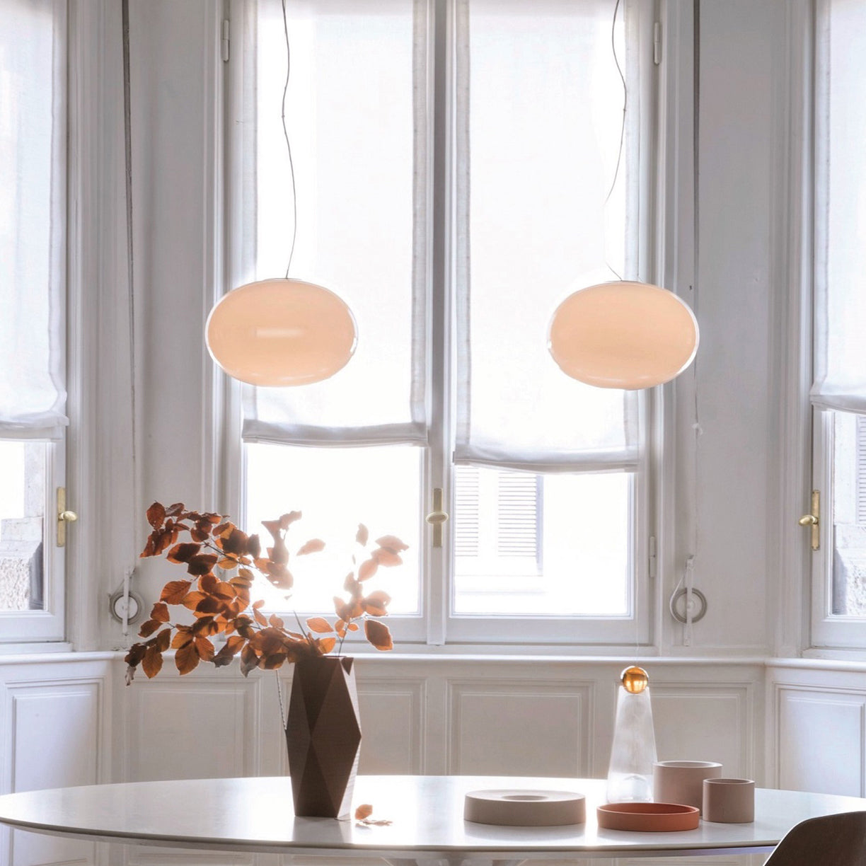 Sometimes the simplest designs can have the greatest impact. With the Alba Pendant Light from Oluce, you can bring a brilliant touch of illumination to your home, while balancing your space with strong, visual style. A beautiful suspension design crafted with opaline blown glass diffusers, this pendant showcases a transparent cable and white ceiling rose for a cohesive overhead design. Station several above your dining room table for ample lighting at family meals, or string along your kitchen island countertop for a simple, and well-lit morning routine.