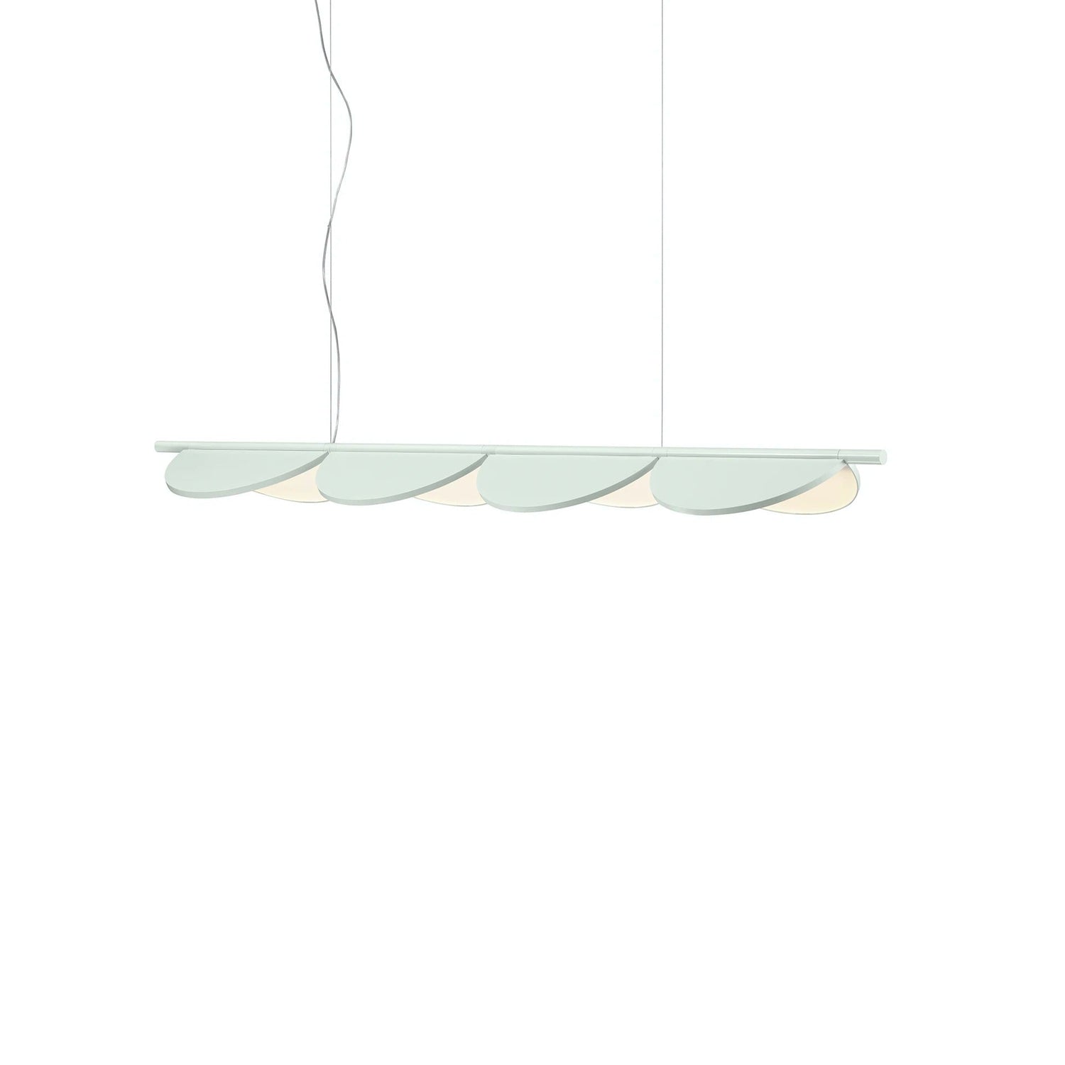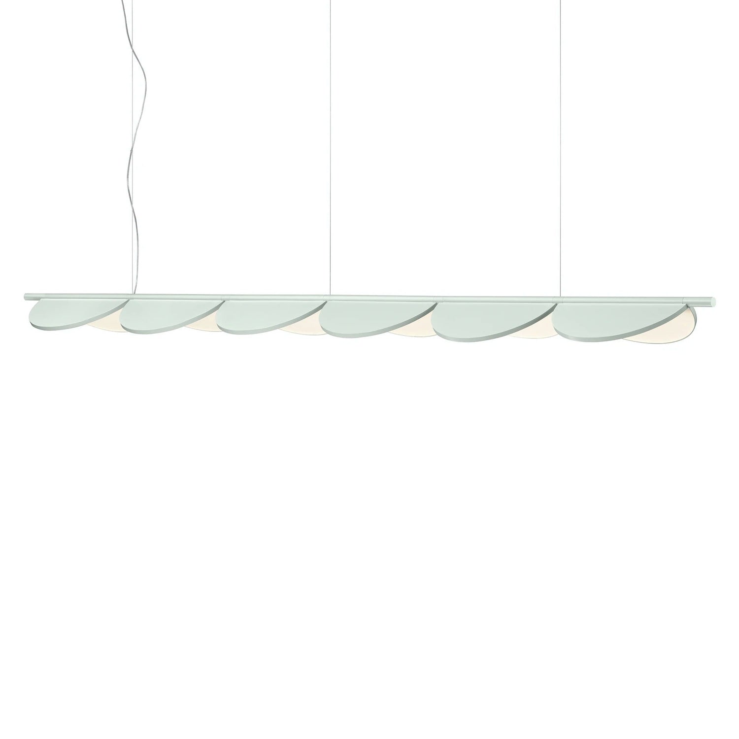 Almendra is a modular, and customizable, suspended lighting system providing diffused light emission, available in linear and organic leaf-like compositions. Designed by Patricia Urquiola, the Almendra lighting system was born from the idea of providing a functional, efficient, yet gentle and soft light with a highly comfortable emission, explains the designer, like the one that caresses the leaves of a tree outside the window of one's home.