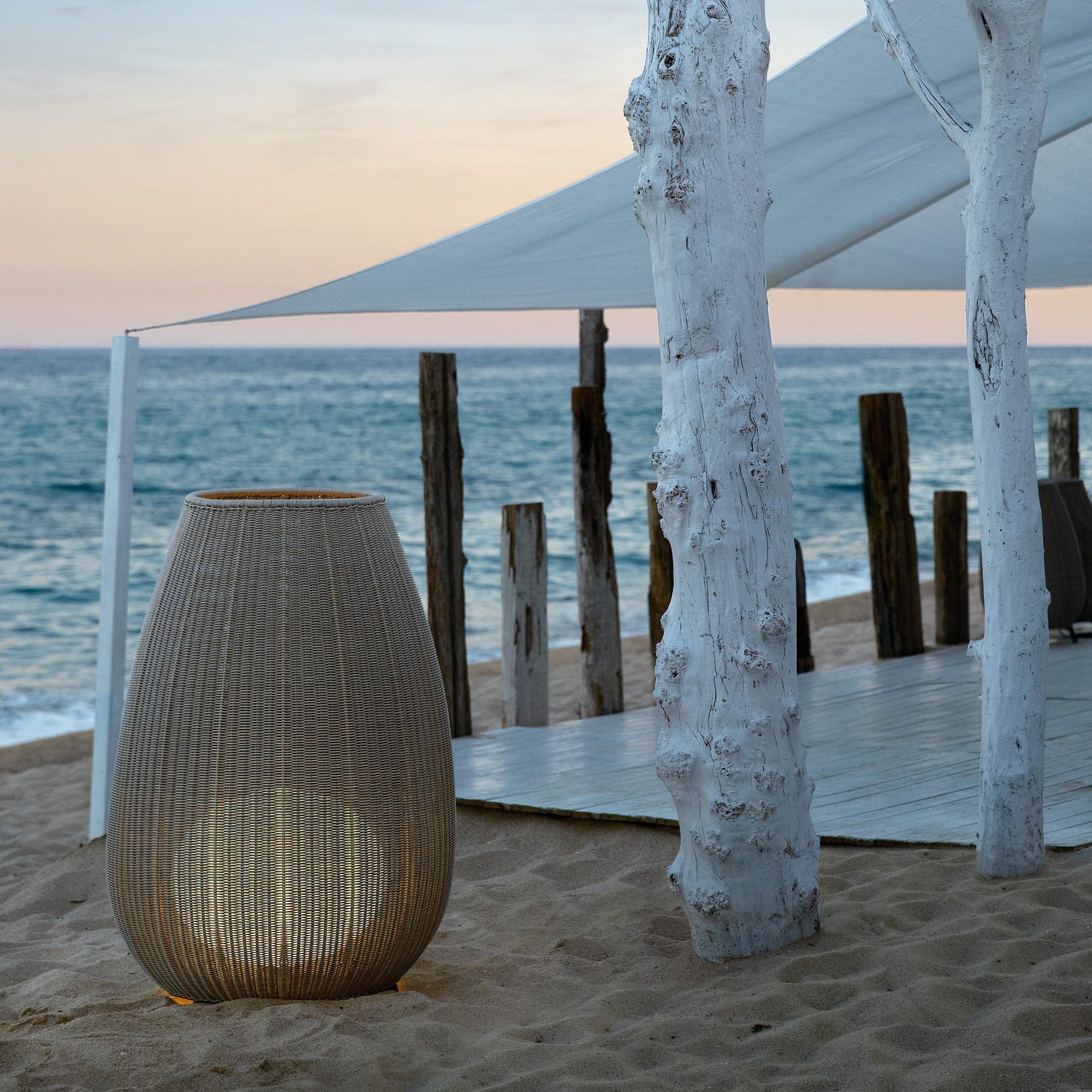Ready to bring a textured touch to both indoor and outdoor spaces, the Amphora Outdoor Floor Lamp from Bover features an eye-catching silhouette and high-end materials for a stand-out lighting design. Showcasing a handwoven frame crafted from synthetic polyethylene fibers, this lamp is complete with a cataphoresis treatment to help withstand exposure to the unexpected elements of the outdoors. Available inseveral neutral colors to mesh with your space, the light source is protected by a frosted, polyethylene globe of medium density and UV protection for the perfectly warm glow. Available in multiple sizes, the Amphorais ready to make a sculptural statement in any environment.