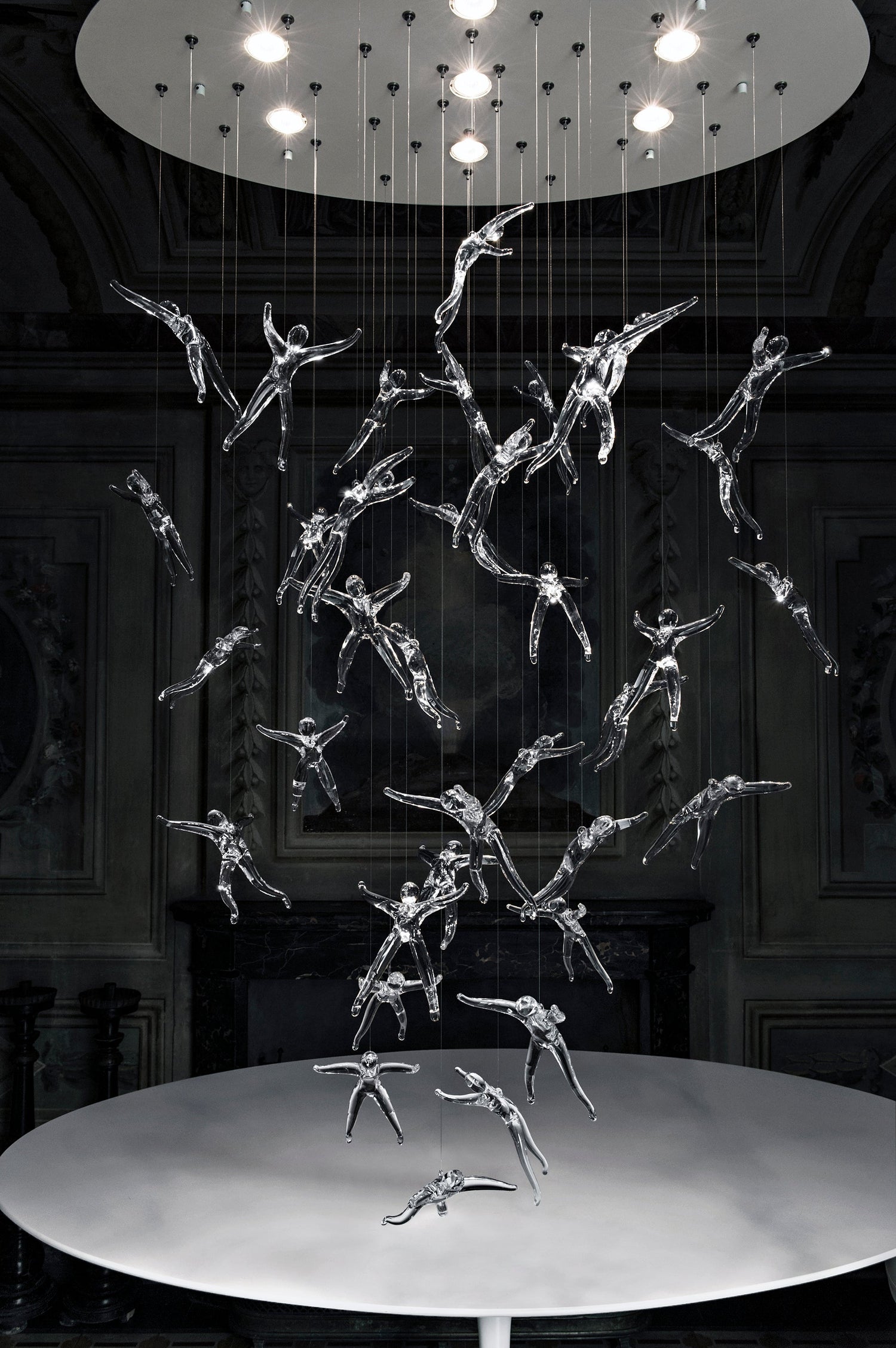 For his latest work for Terzani, Nigel Coates, well known for his unorthodox approach to design, has created an engaging, unique light. Customizable groups of hand made crystal (24% lead) angels are illuminated by halogen or led lamps. What caused these angels to fall from the heavens? It's up to the viewers to decide. Either way, Angel Falls is sure to garner attention, and generate conversation, in any setting.