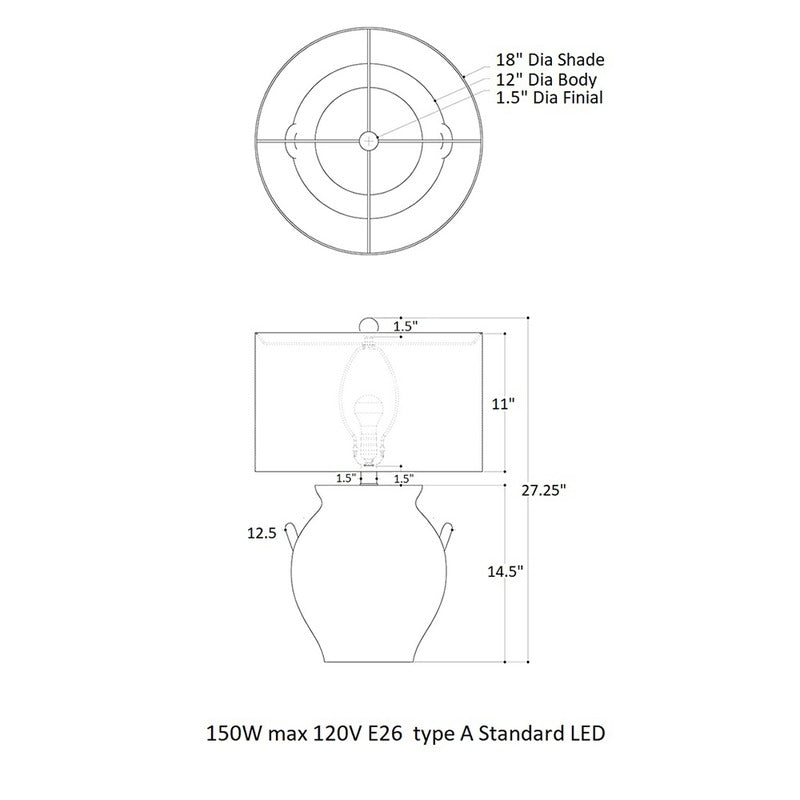 Made of terracotta in a black ash finish, the Anza Table Lamp mimics a ginger jar shape with cleverly placed handles. The roughness of the surface of the terracotta gives this dark gray lamp an extra dose of texture. Wrought iron hardware in a satin black finish is a seamless addition to the composition, as is the matching terracotta finial in a black ash finish that fastens the natural linen drum shade to the lamp.