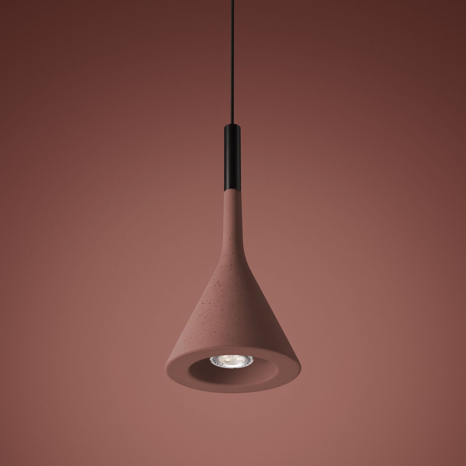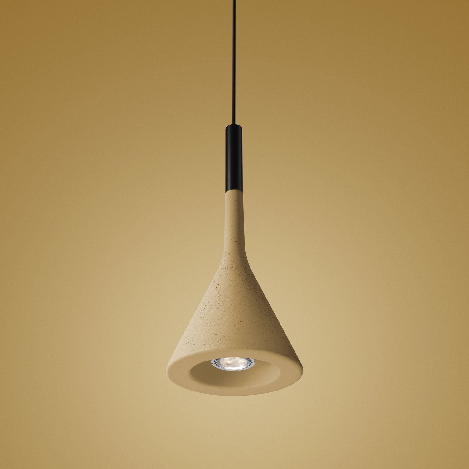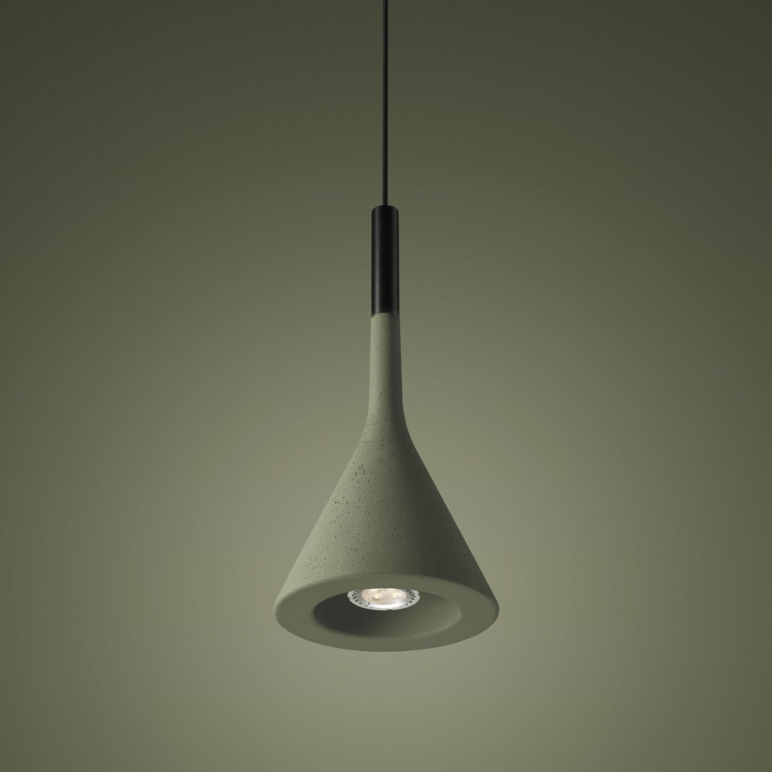 The Foscarini Aplomb Suspension Light is a modern pendant light with a clean, refined form that emits direct, precise light. Comprised of concrete, an expressive material of contemporary architecture, Aplomb is a modern lighting design of textural richness and formal simplicity. The small size of the Foscarini Aplomb makes it a versatile lighting choice, as effective whether installed on its own, in a symmetrical linear arrangement, or as an asymmetrical grouping. Available in three different colors, via pigments added directly into the concrete mix, the Foscarini Aplomb Suspension Light is a modern pendant light that complements almost any interior space.