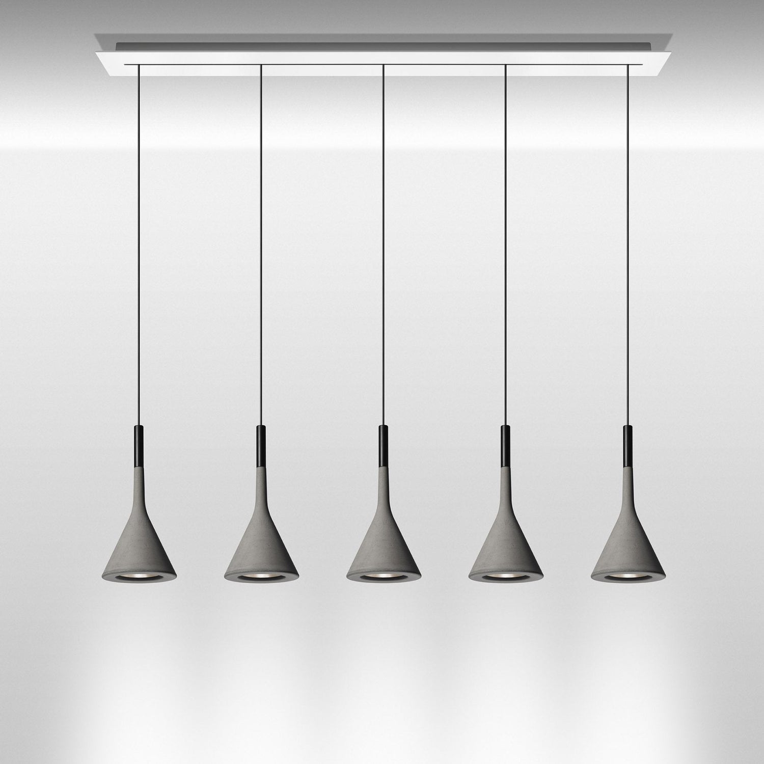 The Foscarini Aplomb Suspension Light is a modern pendant light with a clean, refined form that emits direct, precise light. Comprised of concrete, an expressive material of contemporary architecture, Aplomb is a modern lighting design of textural richness and formal simplicity. The small size of the Foscarini Aplomb makes it a versatile lighting choice, as effective whether installed on its own, in a symmetrical linear arrangement, or as an asymmetrical grouping. Available in three different colors, via pigments added directly into the concrete mix, the Foscarini Aplomb Suspension Light is a modern pendant light that complements almost any interior space.