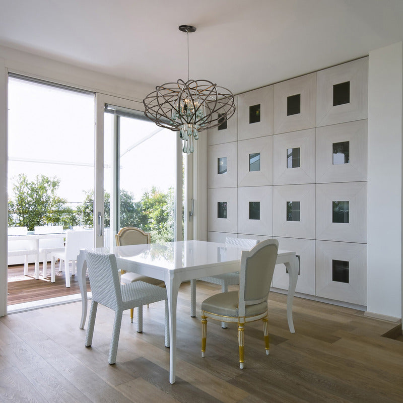 The famous desert US military test site has given birth to rumors of captive aliens, alien spacecraft and various other UFO phenomenon. Now they add their two cents to the legends. Our Area 51 features recycled steel and recycled glass in a fixture where the inner structure becomes the exoskeleton and the concept of crystals is turned inside out - literally.