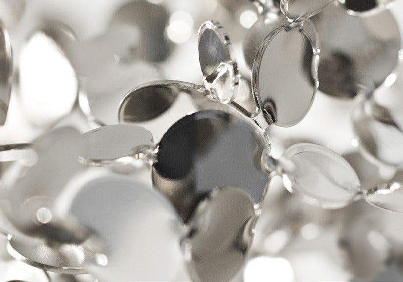 With this new suspension light, designer Dodo Arslan creates a shimmering, cloud. Argent consists of metal discs that have been meticulously shaped by hand by Terzani craftsmen into clusters. Once lit, the multiple, angled surfaces of the discs emanate a soft, shimmering, white glow.