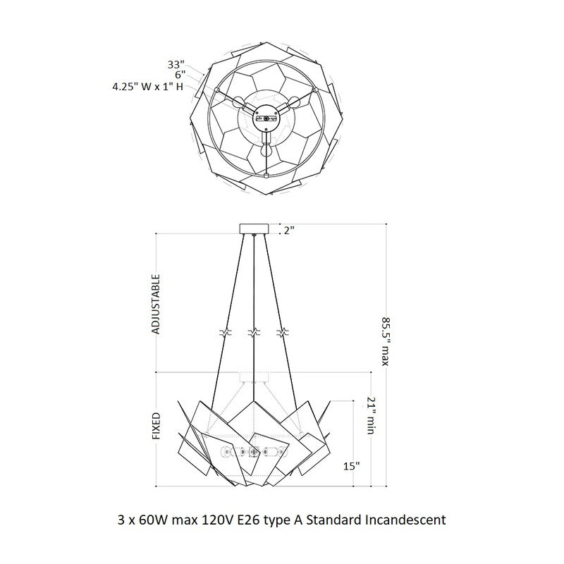 Proving a light fixture is far more than the sum of its parts when it is brilliantly designed, the Ariste Chandelier is a powerful composition made of simple wrought iron-panels. It's how these sheets of metal, which have been treated to a silver leaf finish, are arranged that bring the silver chandelier its edgy style, the bottom of the creation fitted with an opaque acrylic diffuser that will soften the flow of the three-light fixture.