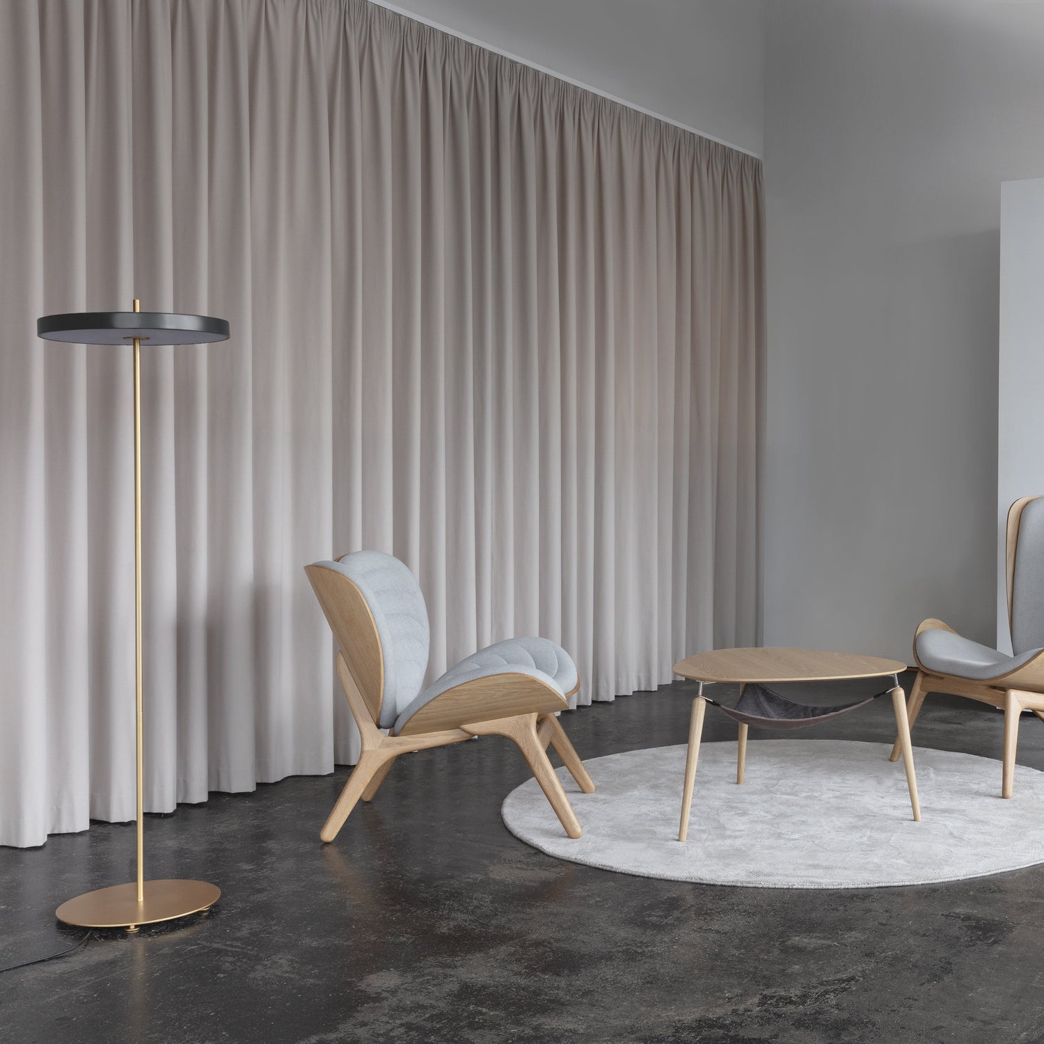 The Asteria floor lamp is born at the crossroads of design, technology and craftsmanship. It incorporates a built-in LED technology with a shape so minimal that it will never go out of style. The LED panel is dimmable and has a white diffuser ensuring a soft illumination in the surrounding space. The brass stem going through the floor lamp as a vertical axis, reinforces a tight expression and by turning the top part of the stem you easily turn the light on and off.