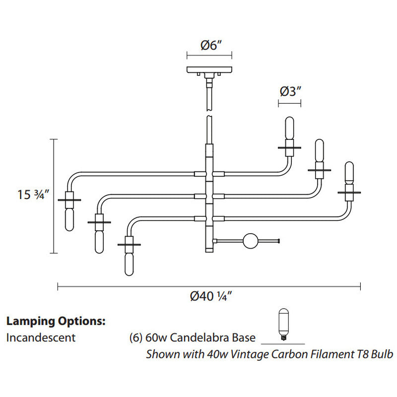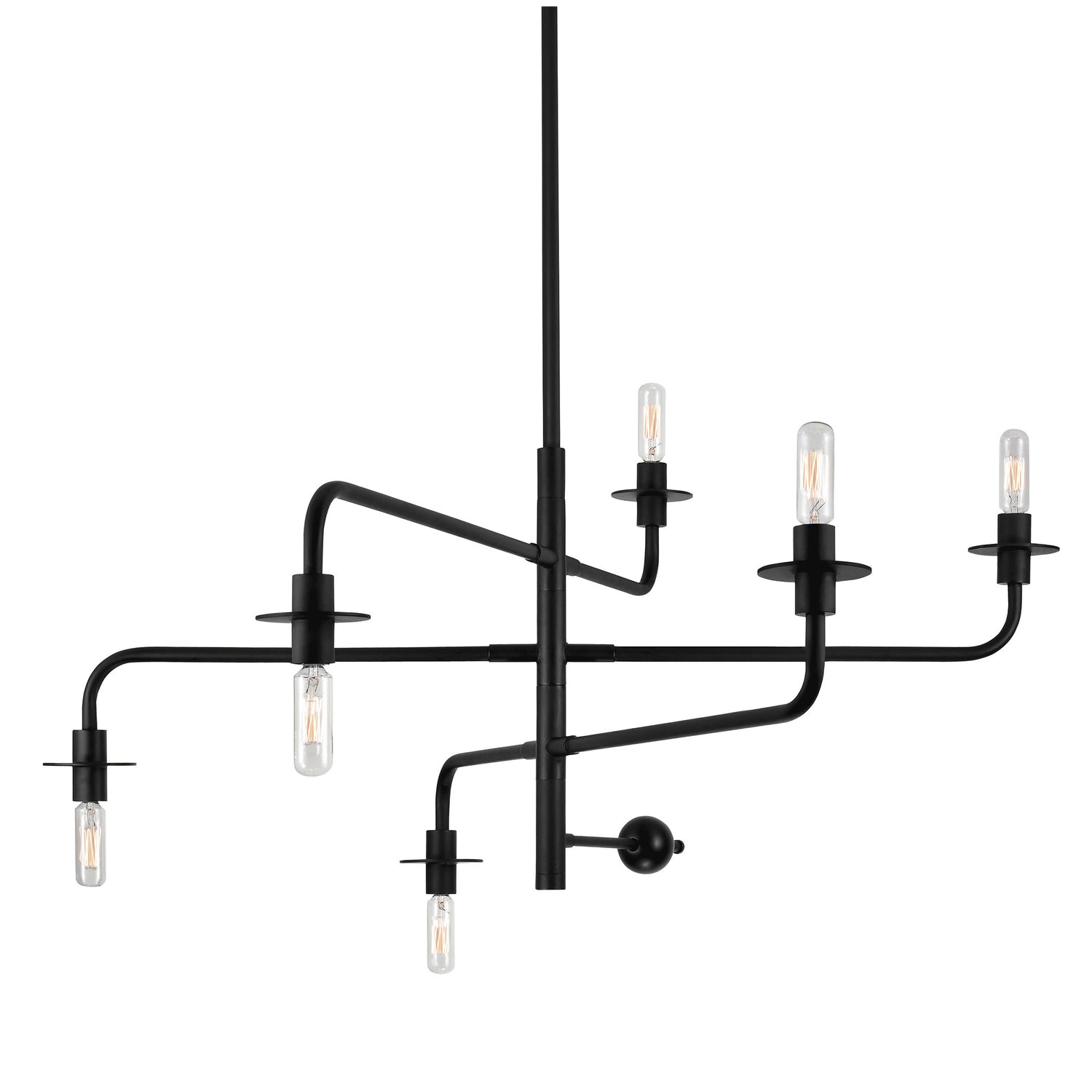 The Atelier 6-Light Pendant is a contemporary style bred from the urban edge. The pendant is offered in a satin black finish with a metal frame and 6 exposed bulbs, providing ambient light. Includes a canopy with hang straight and stem kit with 3 x 12 sections and 1 x 6 section with a maximum overall height of up to 57.75.A weight rotates on a stem to counter-balance its rotatable arms.