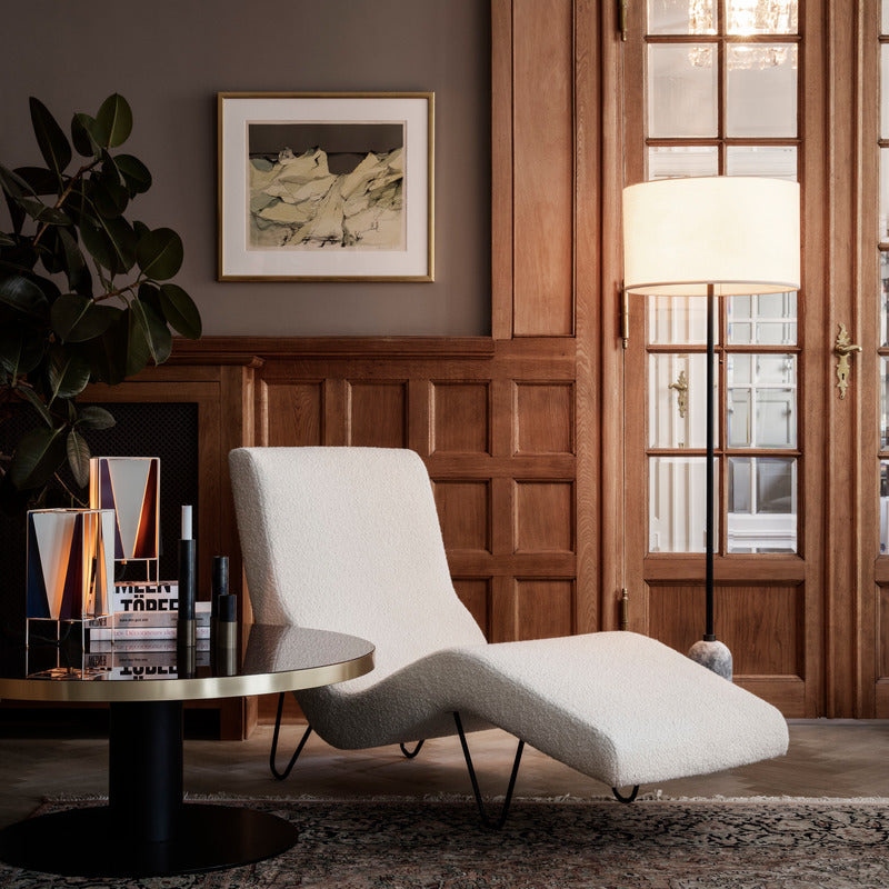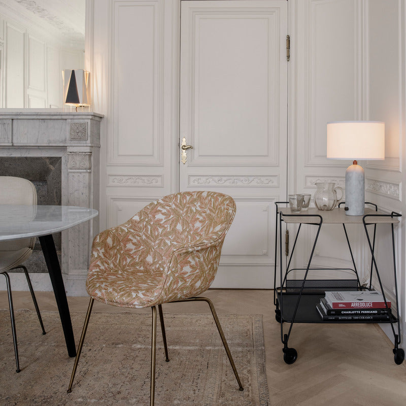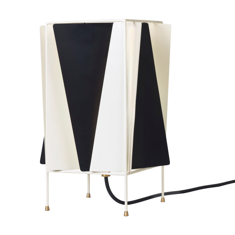 The B-4 Table Lamp by Greta M. Grossman was designed in 1945 and bears her whimsical and powerful signature style. With playful angles and geometric elements, the table lamp is characterized by its colorful and movable visors allowing light to diffuse softly around any table it stands on. The lamp fits effortlessly into almost any environment, adding a dash of American modernism panache to the room. The silhouette of the B-4 Table Lamp, with its stilt base and alternating color panels, resembles some of Greta M. Grossman's most iconic architecture more than any other design item from her career. Typically, her houses were perched high up on stilts with cantilevered decks and walls of glass to take in the magnificent hillside views of Southern California ¨C and with a fanciful style the B-4 Table Lamp beautifully reflects her modernist design principles.