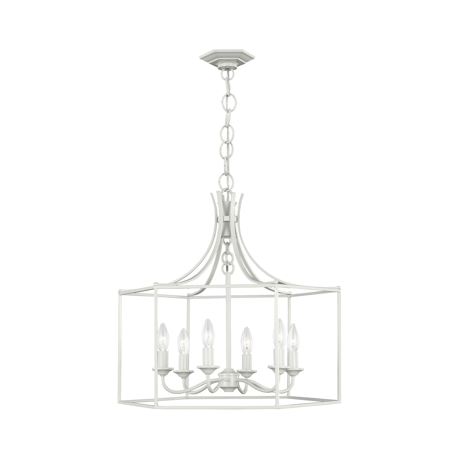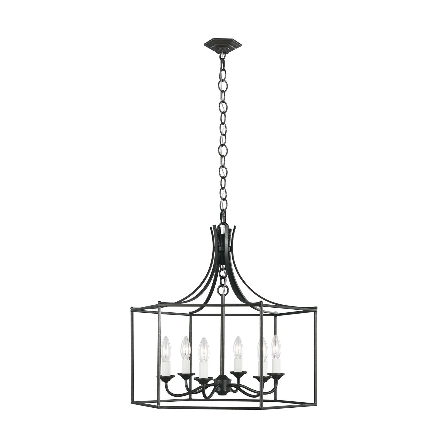 The Alexa Hampton Bantry House lanterns from AH by Alexa Hampton sport an open, airy frame with an elegant, birdcage-like design. Slim, straight metal bars swoop down from the canopy to align around the main drum-shaped frame. The central column suspends an inner, candelabra structure, with four curved light arms, simple candle cups and a globe canopy. Alexa Hampton Bantry House six light large pendant provides abundant light to your home, while adding style and interest.