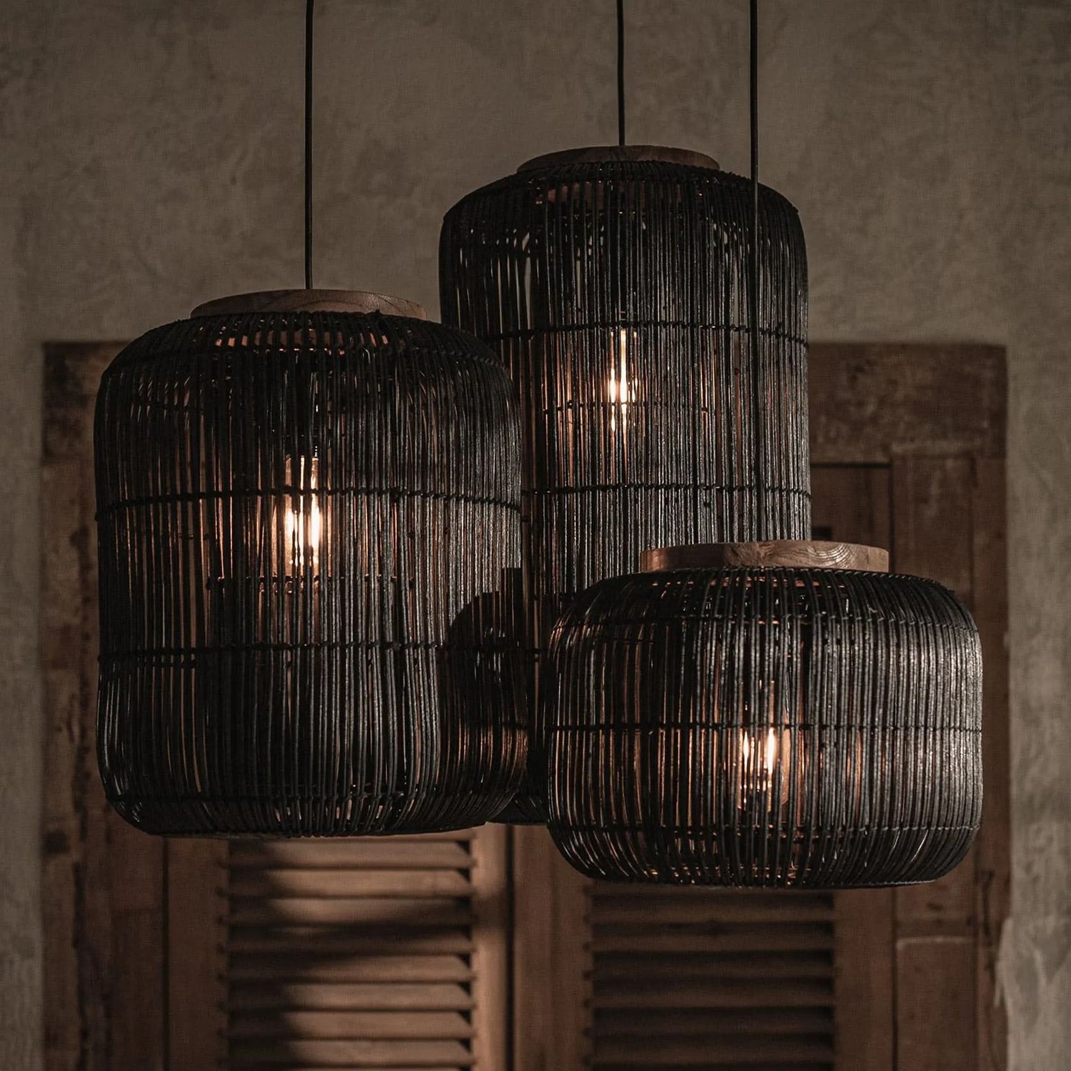 The Barrel lamp is a real statement maker. The pendant is made entirely by hand from high quality rattan, finished with a teak top. Due to its beautiful open structure and the contrasting black color, the Barrel lamp provides a powerful light source in any room. Available in various sizes.