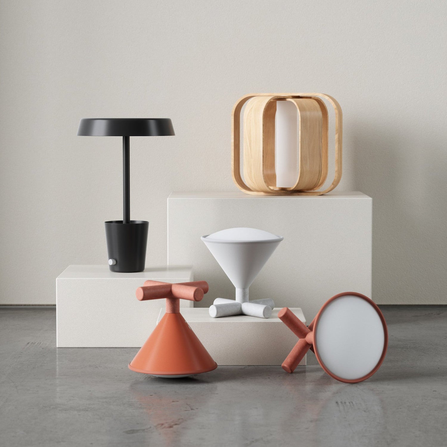 This desktop light features a 360-degree LED, with bentwood shades that can be opened or closed to create your own ambience. Bellwood Lamp includes a touch and hold dimmable light feature that also lets you control the light fixture. This portable lamp also includes chargeable batteries as well as USB cord for recharging (charge lasts for up to 2 hours). Bellwood's interactive design lets you control and adapt the intensity of light depending on the room, your mood, and time of day. Its integrated LED is long-lasting with a lifespan of up to 30,000 hours, making it more energy efficient. Light is included and cannot be removed and replaced.