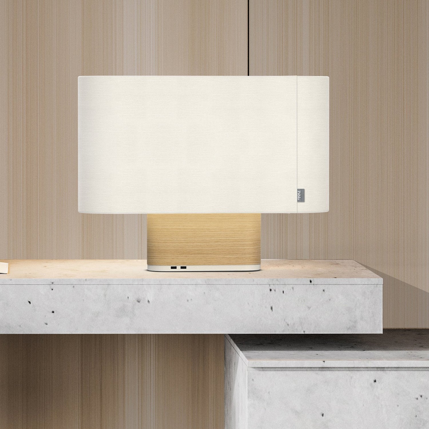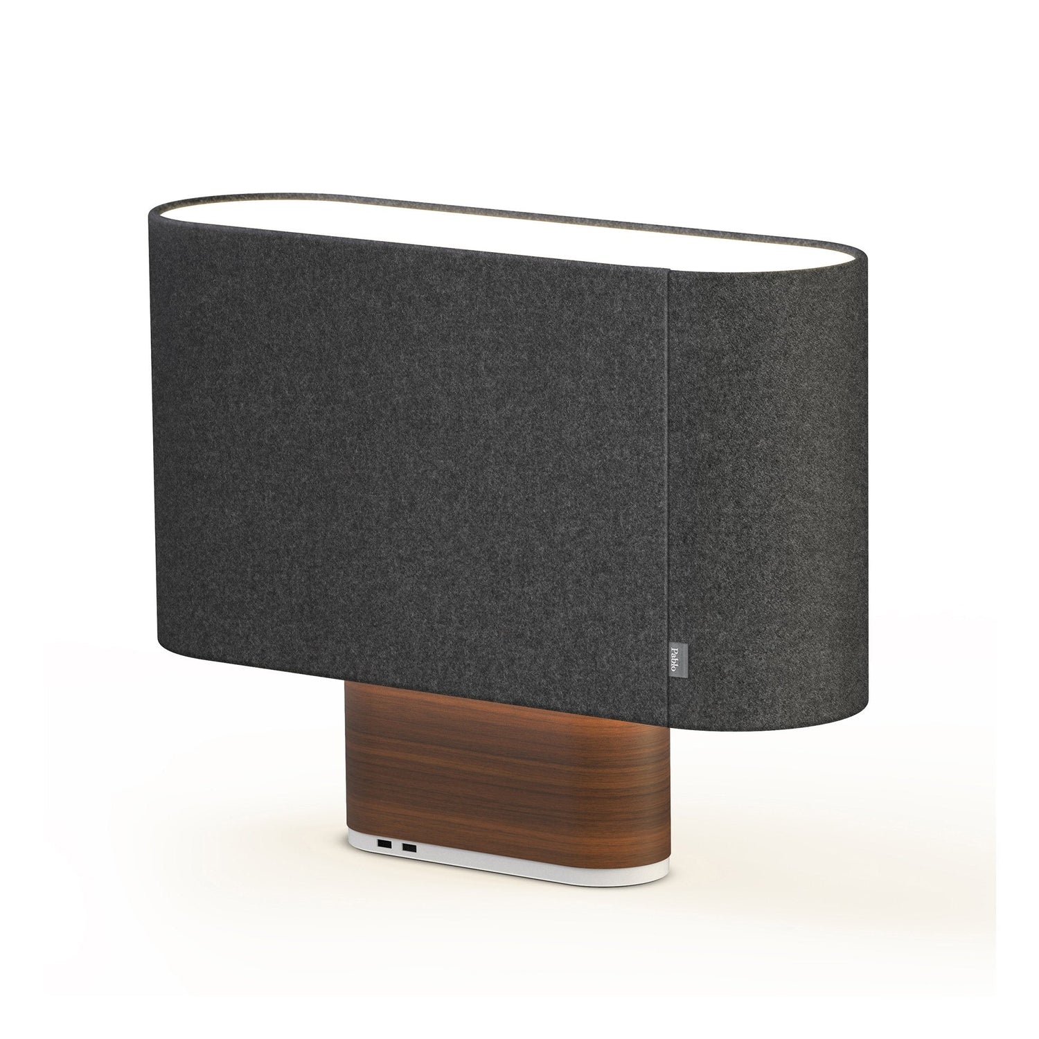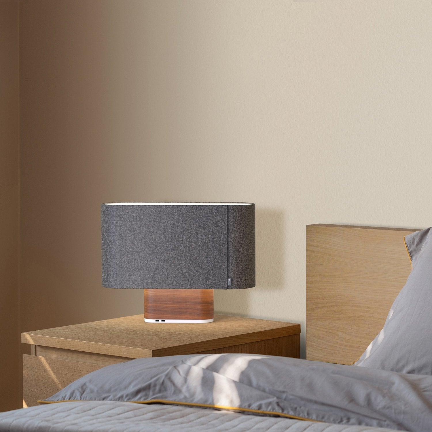 An elegant interplay of proportion and material, the Belmont Table Lamp is designed to illuminate interiors from modern to traditional. Its iconic shade form is comprised of premium wool felt fabric or premium woven white fabric that is delicately balanced over a contrasting hand-crafted solid wood base in oak or walnut. Belmont's unique base also features full range dimming to set the perfect ambiance while two convenient USB ports offer charging capability for all your mobile devices. Belmont Table sits perfectly in residential as well as hospitality and contract environments offering a low sitting light solution that focuses on indirect upward light with a warm and bright glow. Three standard shade colors are interchangeable with 2 wood base finishes.