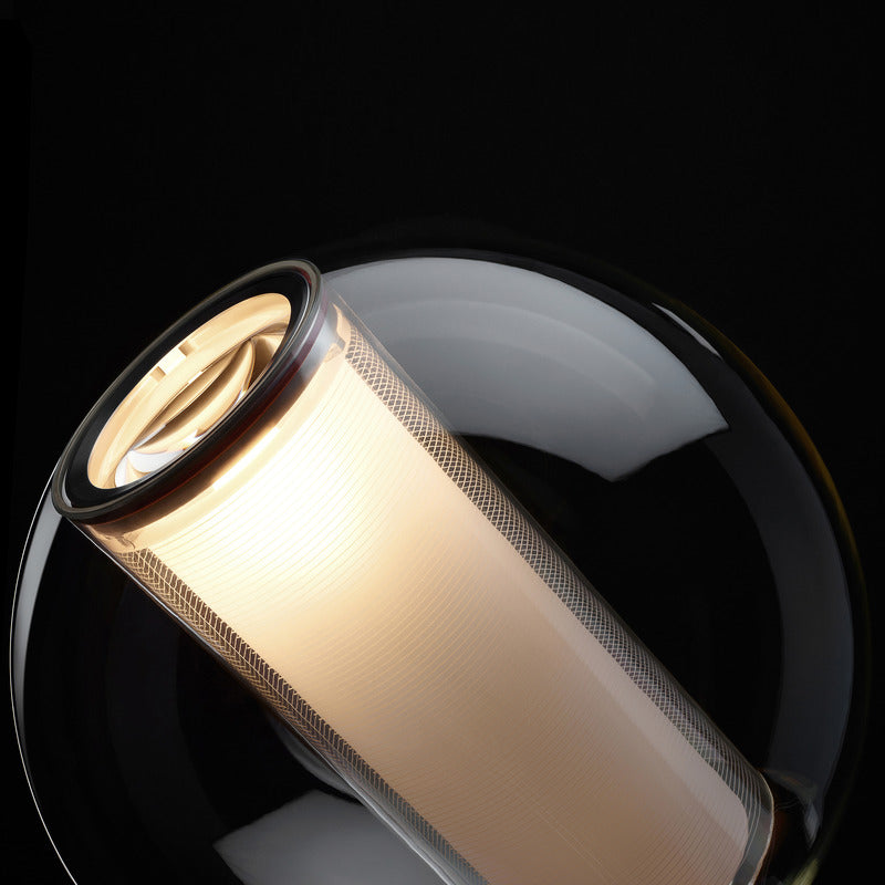 Bel Occhio is a study in weightlessness and transparency, notes designer Pablo Pardo on his inspiration for this luminaire. It evokes nature's transformative light. His piece manifests the celestial through a hybrid design: its suspended, inner column creates focused illumination while its surrounding shell produces a transformative ambient glow. These symbiotic elements enable Bel Occhio to act as a multi-position spotlight and a source of atmospheric tenor. They also serve dynamic purposes: Bel Occhio is built as an infinitely adjustable table lamp and a suspended pendant model. Both elements serve to illuminate with comfort and fascinate the imagination.