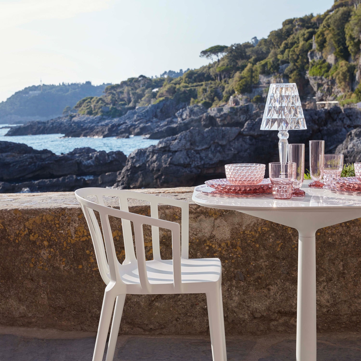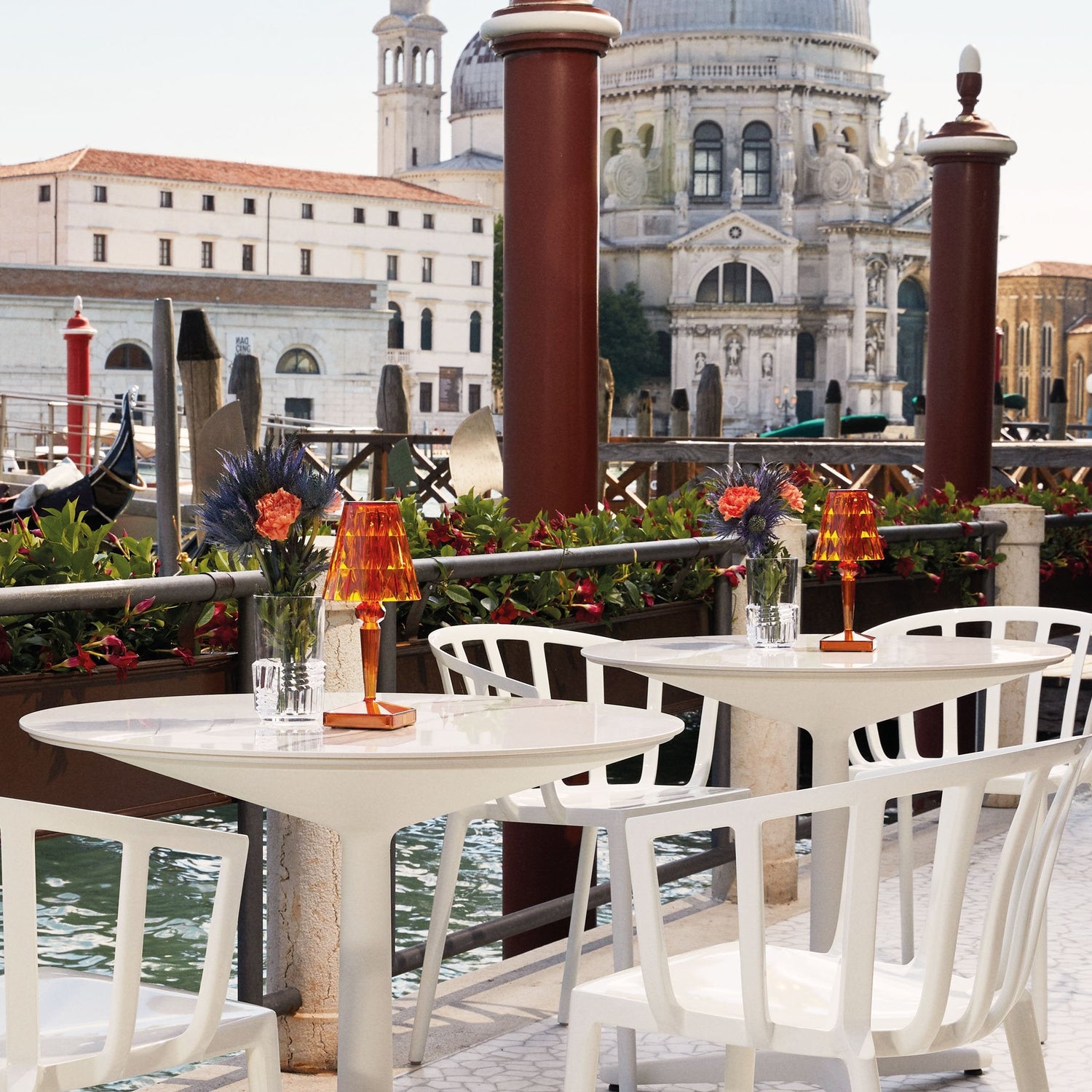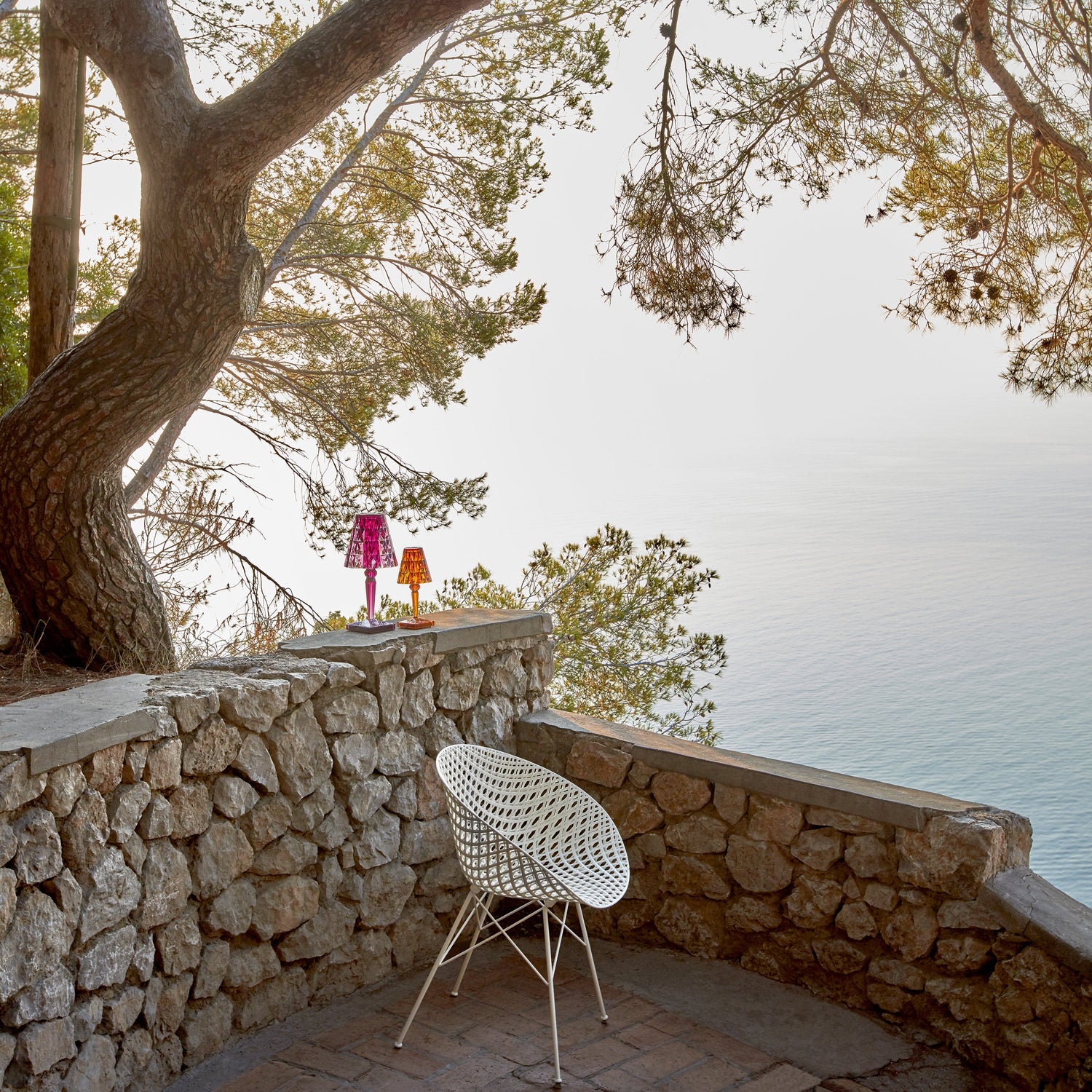 Chic, flirty, and a little bit quirky, the Big Battery Table Lamp from Kartell brings jewel-like beauty to personal and commercial spaces alike. A maxi version of the classic lamp, this luminary is 100% rechargeable thanks to a simple electrical plug which offers up to 8 hours of power, making this design portable perfection. Ideal for use in living rooms, patio dining areas, or cafes and open air restaurants, the brilliant colored PMMA construction and intricate, shimmering pattern guarantee an enhanced ambiance and elevated entertainment space.