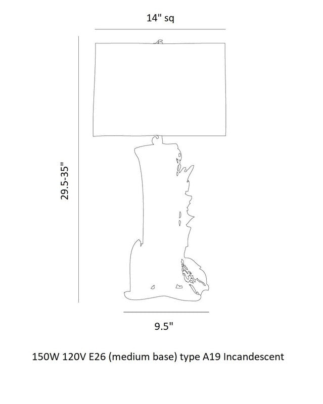 Collected driftwood is hand assembled and then painted white to create this unique table lamp. The square linen shade also has a top diffuser. 3-way switch.
