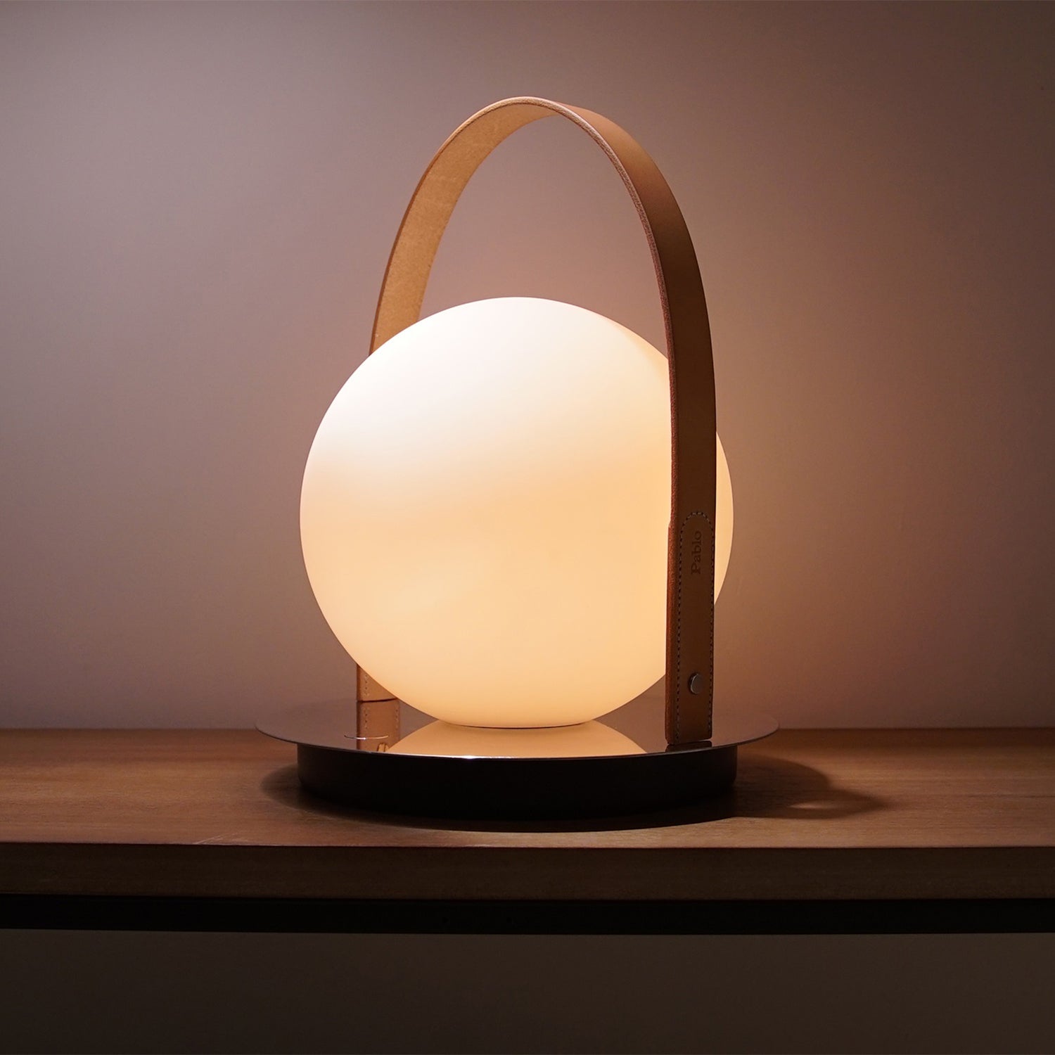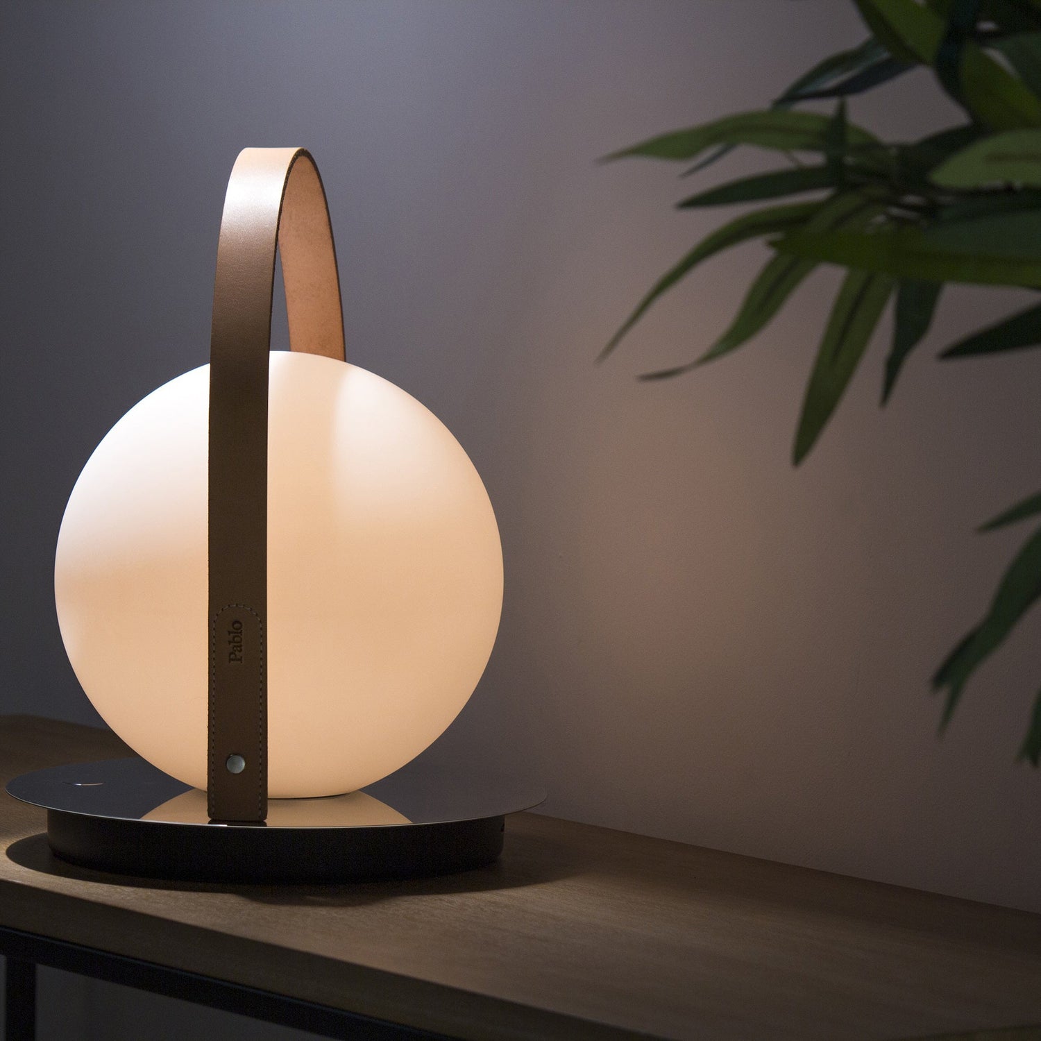Chic, contemporary, and entirely portable, the Bola Lantern from Pablo brings premium quality and eternal beauty to your well-appointed home. Crafted from Stainless steel with an opal glass diffuser, this portable lantern features a supple leather handle for an elevated touch. Outfitted with a USB charging port, this lantern can be moved about your home from living room to covered patio and recharged with ease. A simple, yet impactful design ready to make an impression in your home, this lantern looks great stationed on a side table, bringing ambiance to a patio dining table, or as a child's sleek bedside lighting design for reading at night.