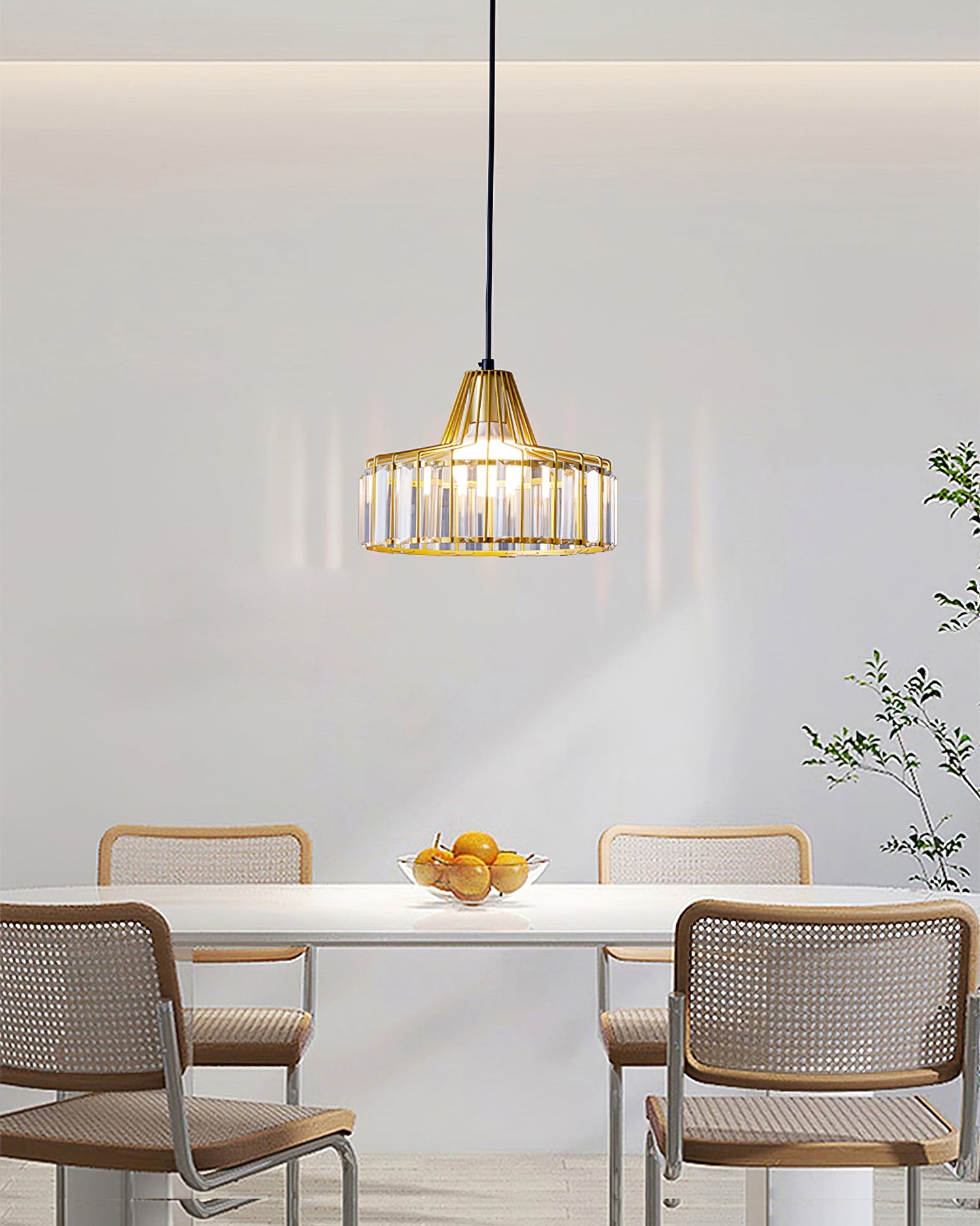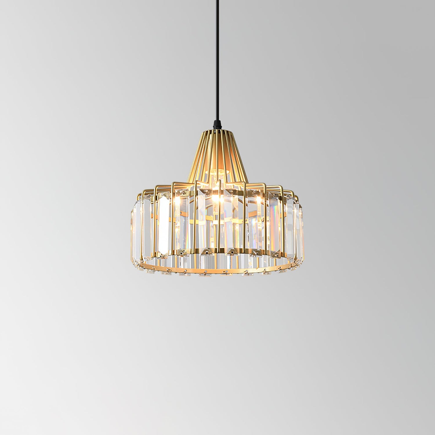 Enhance your decor with this bruckner crystal pendant lamp. The antique copper finished metal fixture holds dazzling and diamond-cut clear K9 crystals. This simple yet refined pendant sparks brightly, creating a warm and sophisticated ambiance in your household.