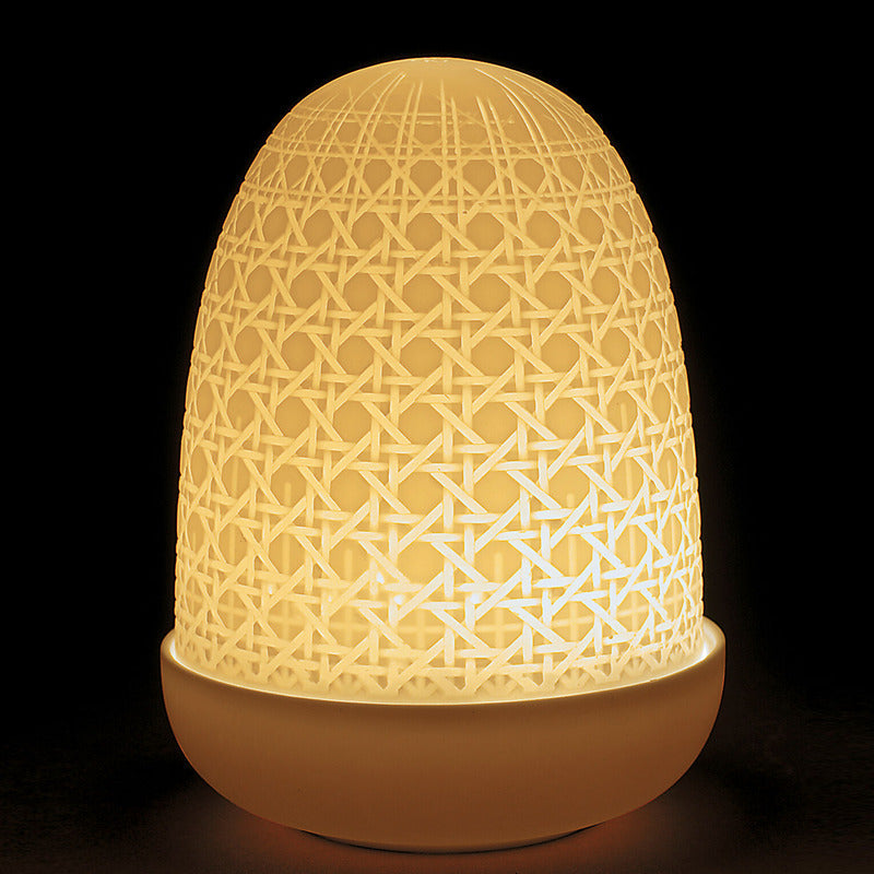 Dome Table Lamp is a new line of lamps based on the technique of lithophanies. When turned on, the light projects the motifs emitting a warm and suggestive glow that invites to calm, to relaxation with a welcoming effect. Its engravings enhance the shape of a cactus. With a Matte porcelain finish and large, showy, dome shaped screens made of translucent porcelain, this allows us to appreciate the laborious work of ornamentation of the hand engraved motifs on its surface.