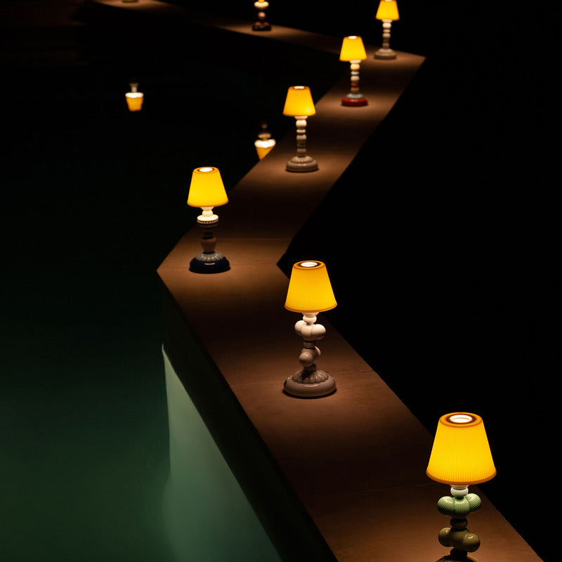 The Firefly collection is inspired by the fascinating light emitted by fireflies on warm summer nights. This is how this collection of wireless table lamps with light autonomy and a rechargeable USB system, designed with plant motifs that evoke, depending on the model, palm trees, cactuses, sunflowers or lotus flowers, came into being. Made entirely of glossy porcelain, several decorative versions are available.