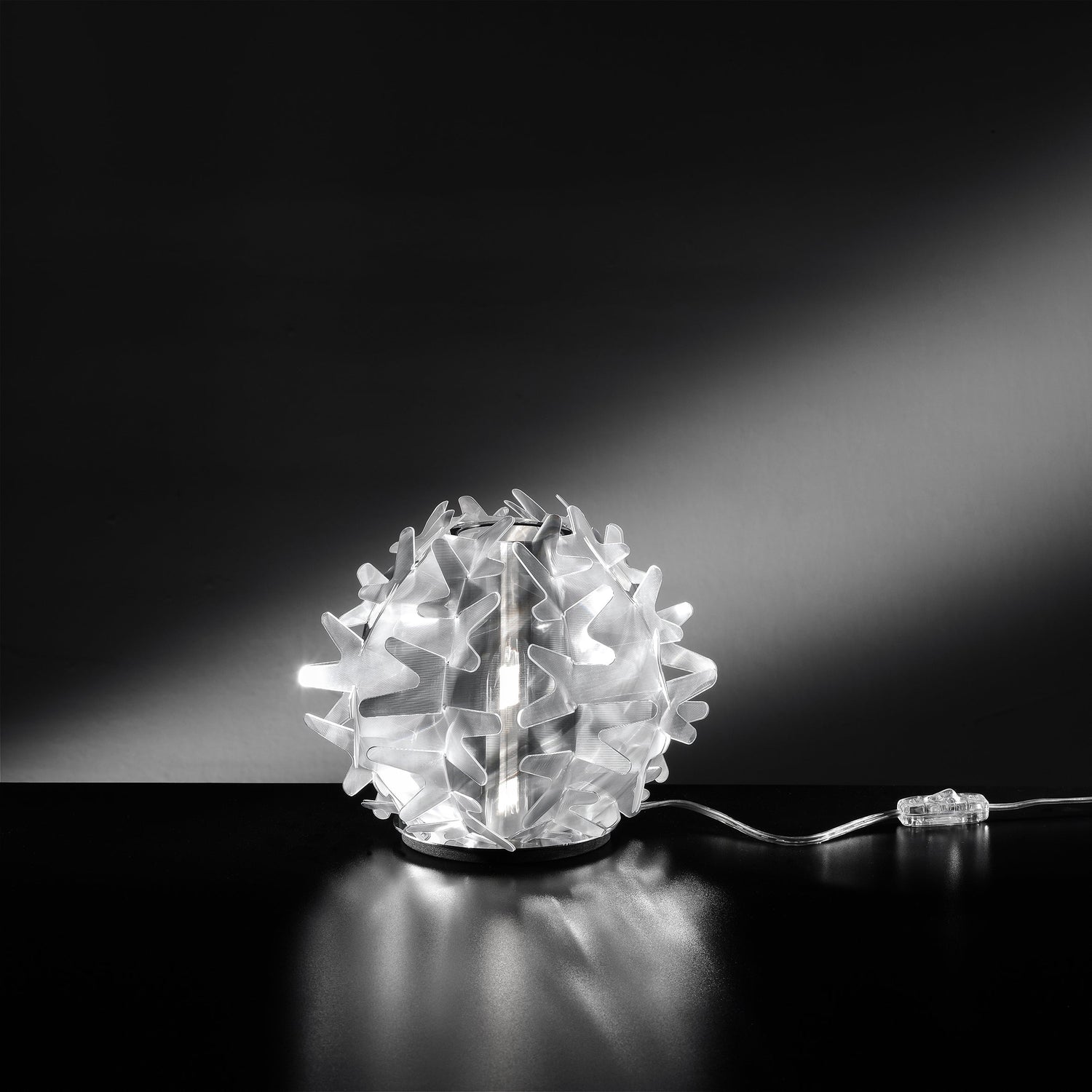 An original lamp with a fresh, spirited and decidedly contemporary outline. Its zig-zag panels faithfully parallel the structure of the real plant. Thanks to Opalflex, its scale and gentle glow work brilliantly to enliven any corner of the room.