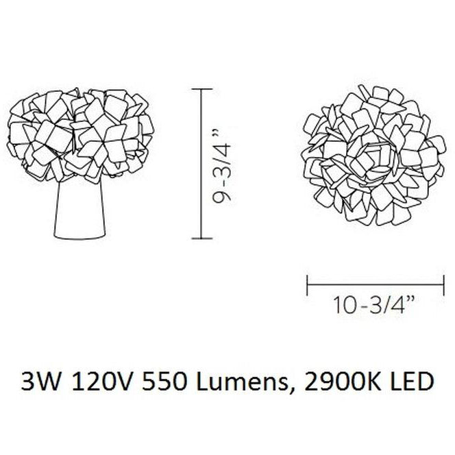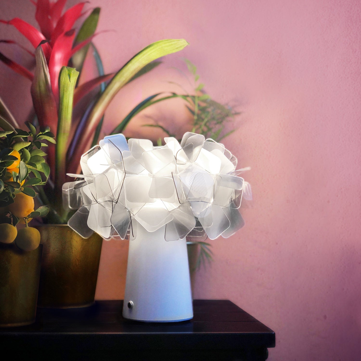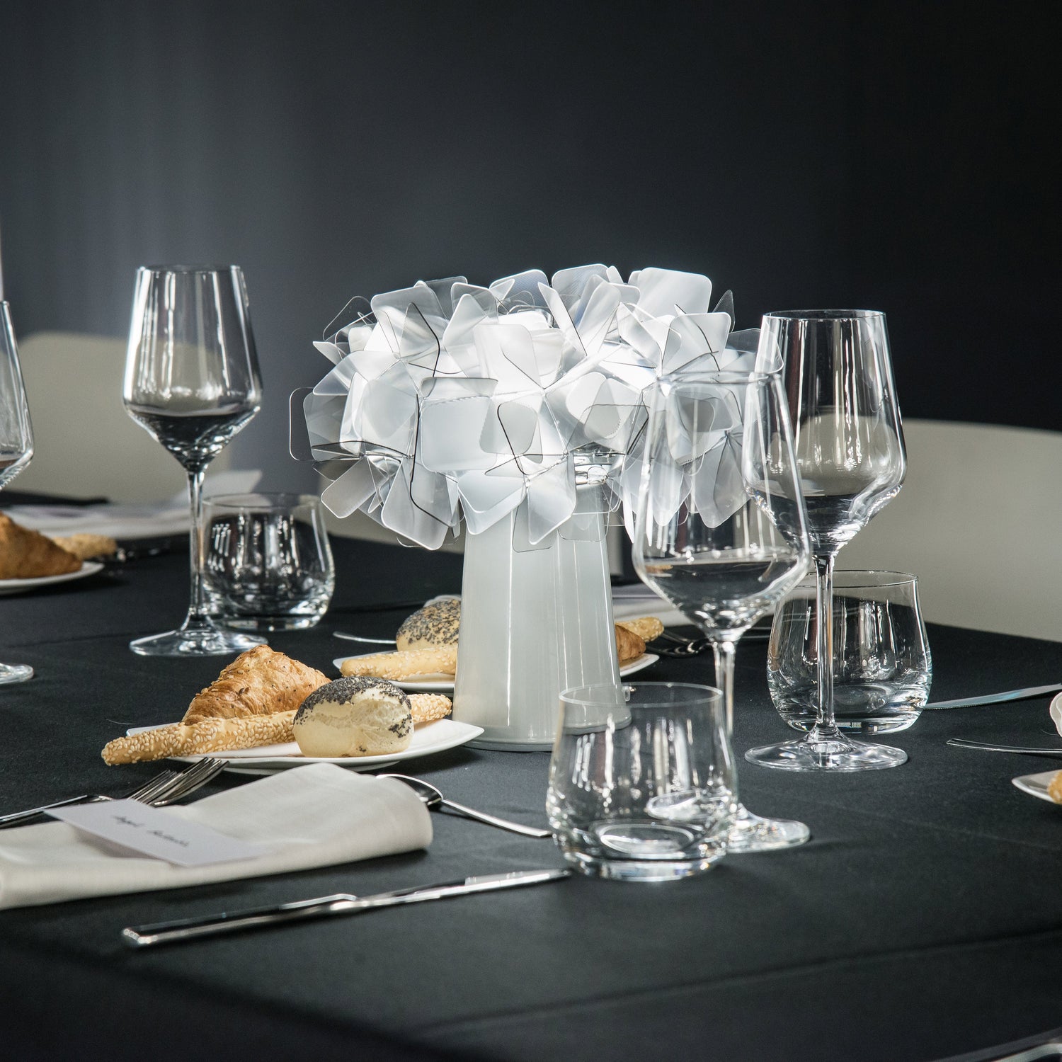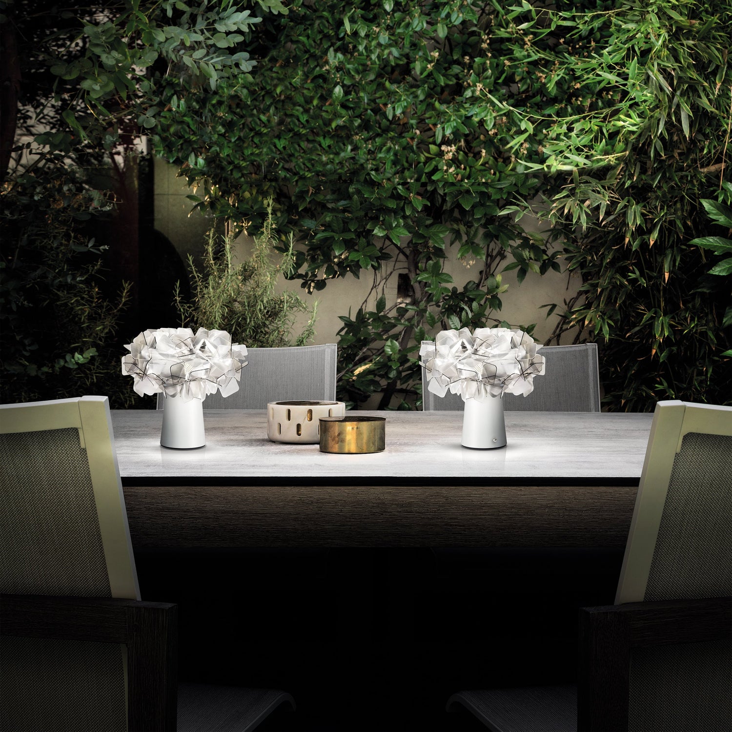 The botanical cordless table lamp, complete with rechargeable batteries, can be easily moved from place to place, bringing soft illumination to a dinner en plein air, an early bedside wake-up, or a warm bath. It is a perfect, original, elegant centerpiece, and even more so when choreographed in numbers along an imperial table setting. It is a fitting decoration for professionals looking to give a romantic, glam touch to their t¨¦te-a-t¨¦te events held on balconies, and in caf¨¦s and restaurants; lighting that makes way for endless imagination and creativity.