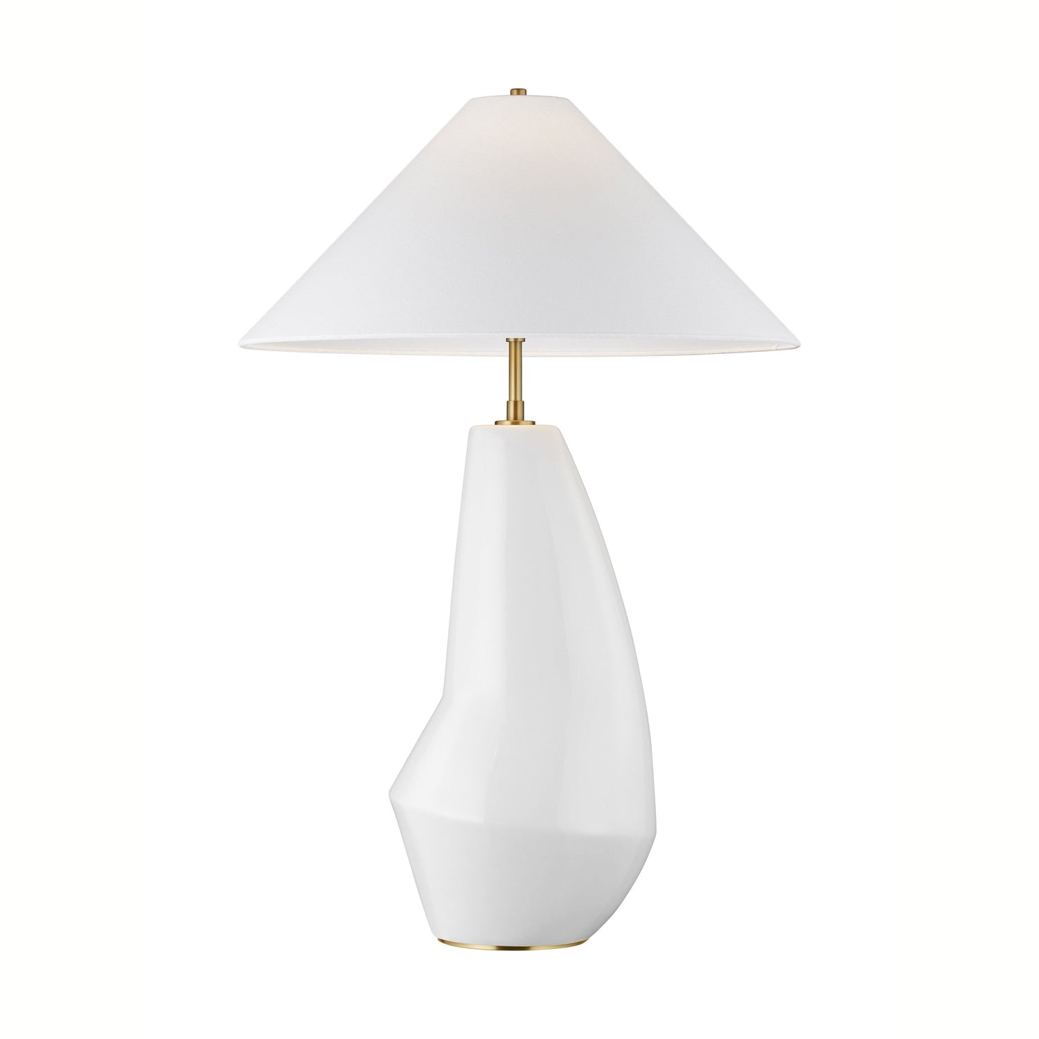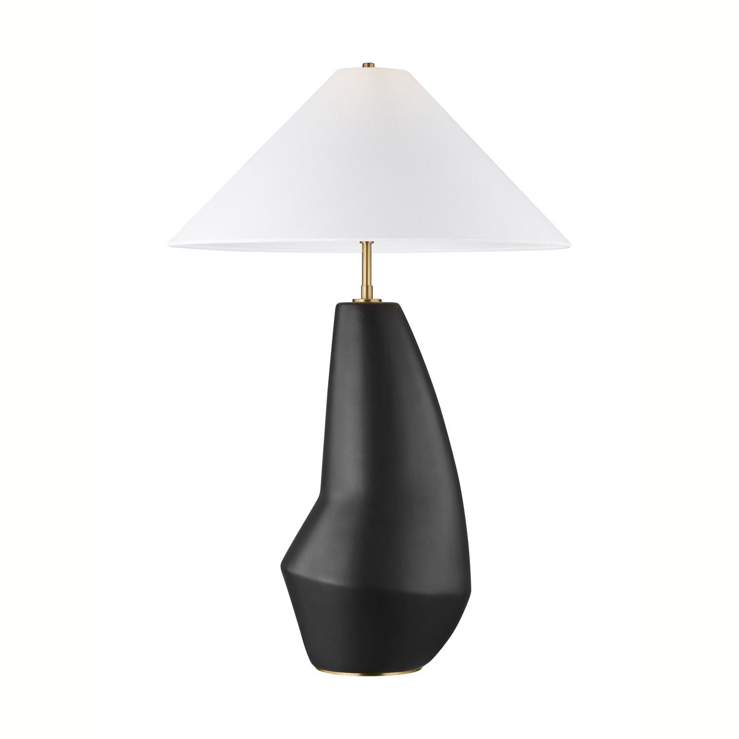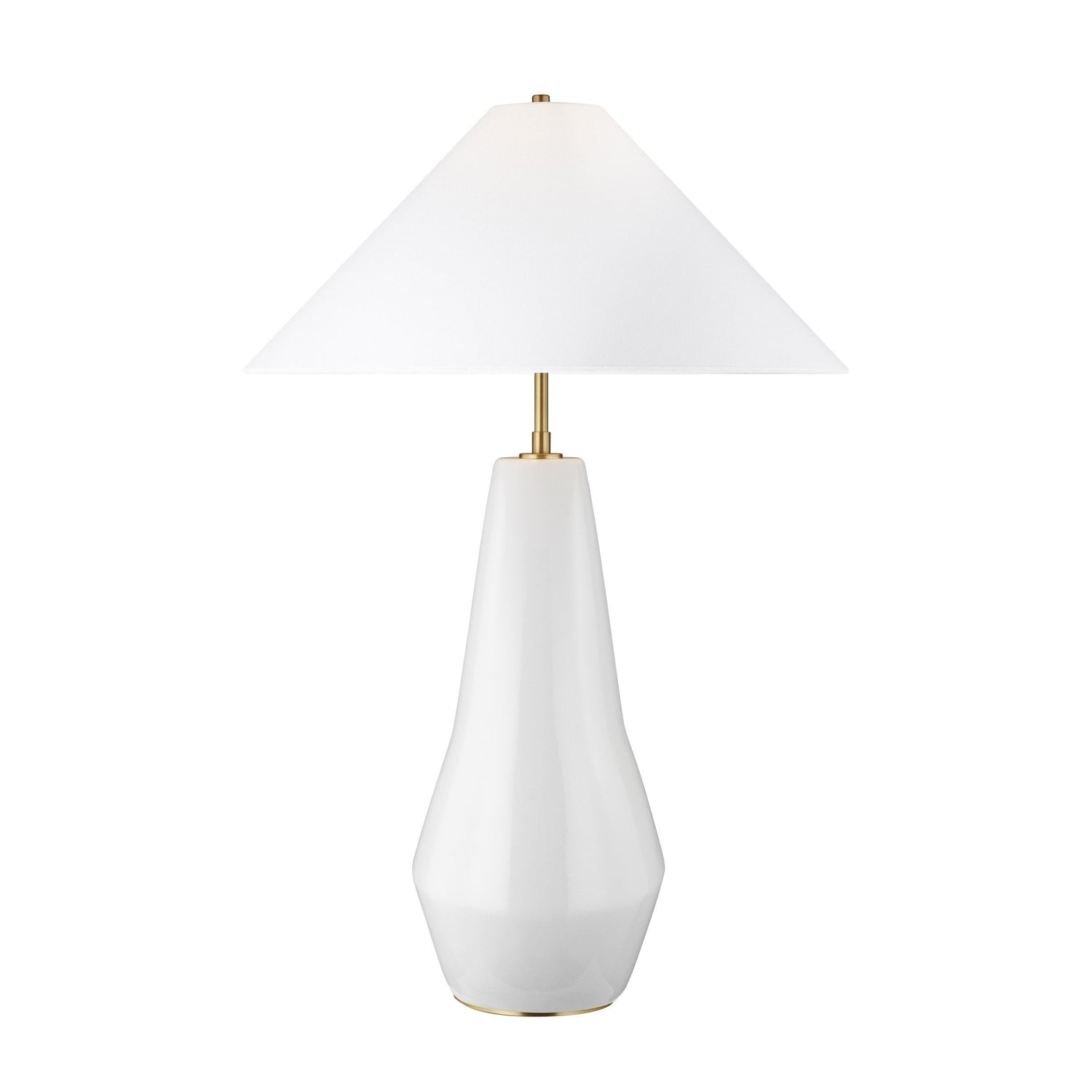 The Kelly Wearstler Contour table lamp from Kelly by Kelly Wearstler is crafted of ceramic with an organic form and mattee glaze in an Arctic or Coal finish. A burnished brass base and white linen shade balance this relaxed design. The Kelly Wearstler Contour one light table lamp in arctic white or coal provides abundant light to your home, while adding style and interest.
