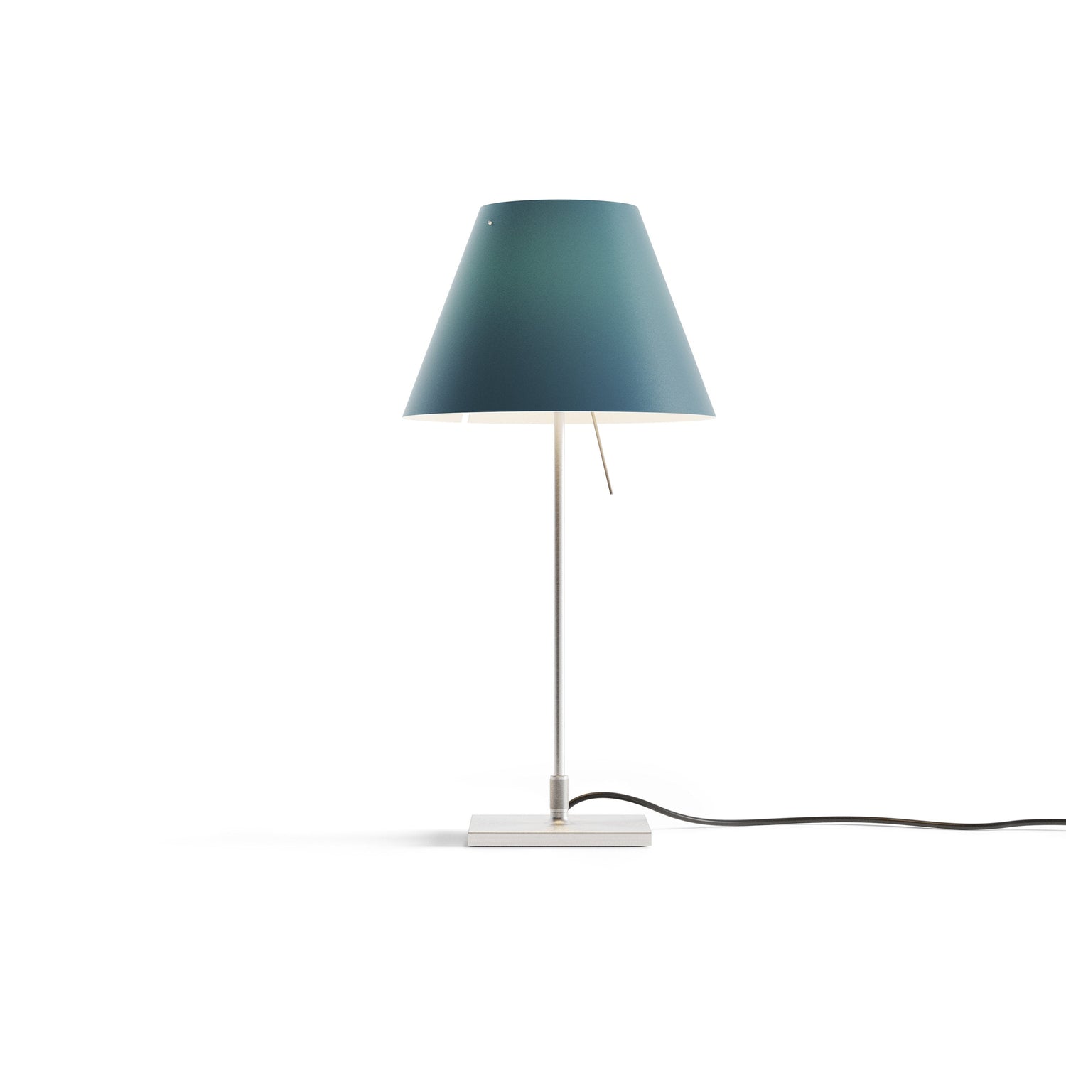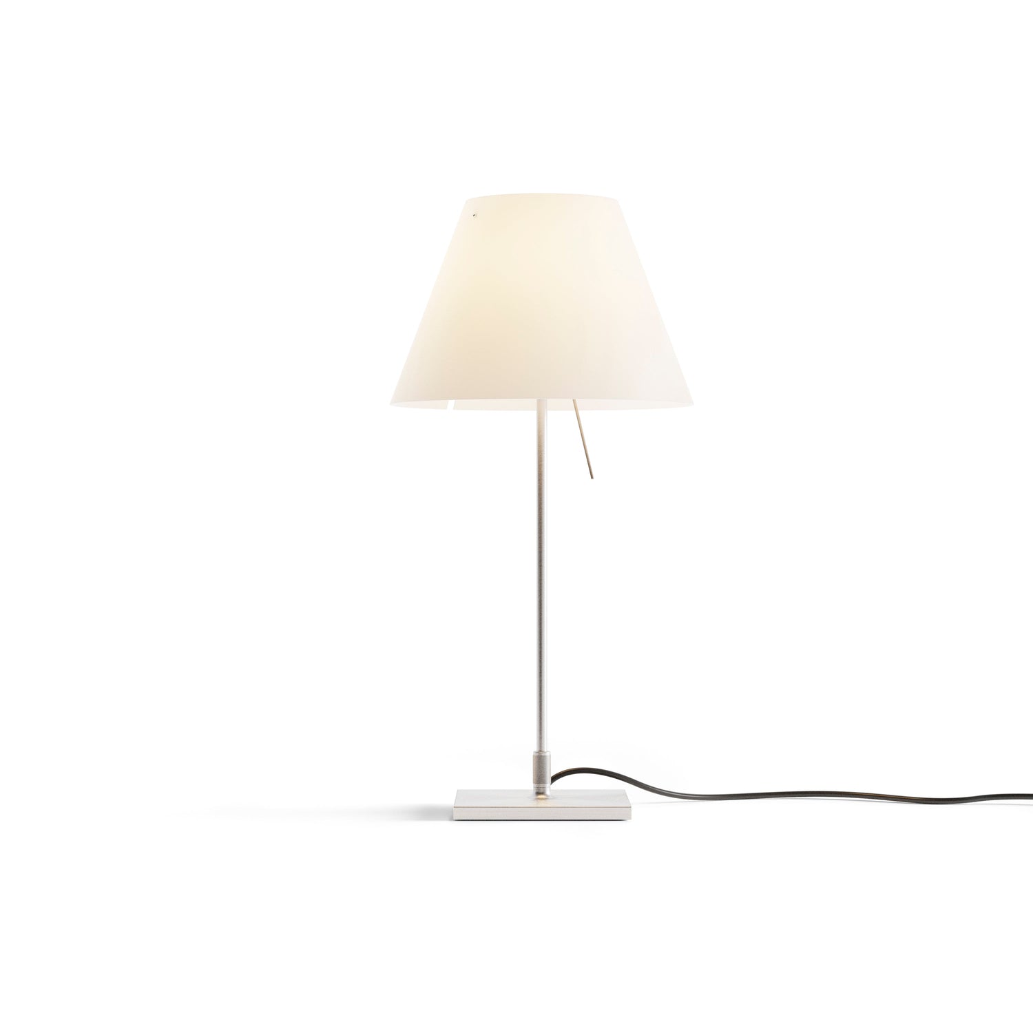 A discrete but solid presence, Costanzina can be easily positioned in any room, without stylistic limitations. The polycarbonate shade balances on just two points of the aluminum structure. If bumped, the shade can swing but doesn't fall.