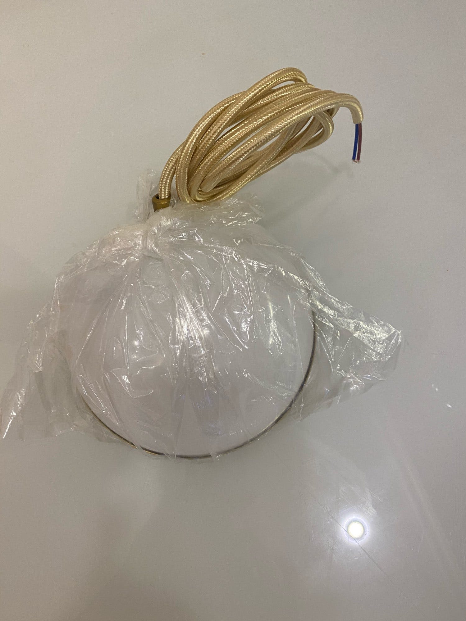 Crescent pendant light is an illuminated Opal sphere sliced in half to reveal a crescent-shaped brushed Brass fascia. Crescent pendant light seamlessly combines the solid and the opaque making this perfect in any setting.