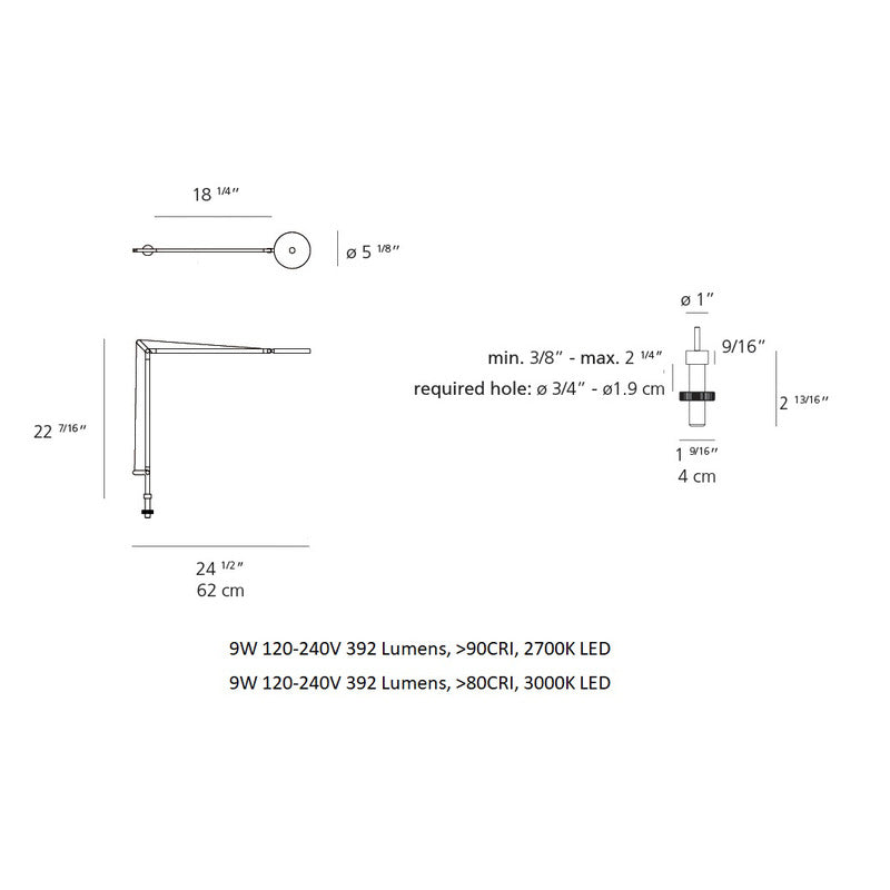 A selection of table lamps (with table base, clamp and fixed support), also available in the reading, wall and spot versions.