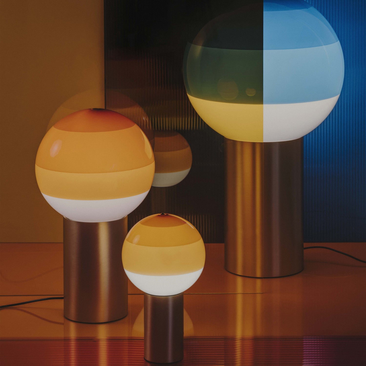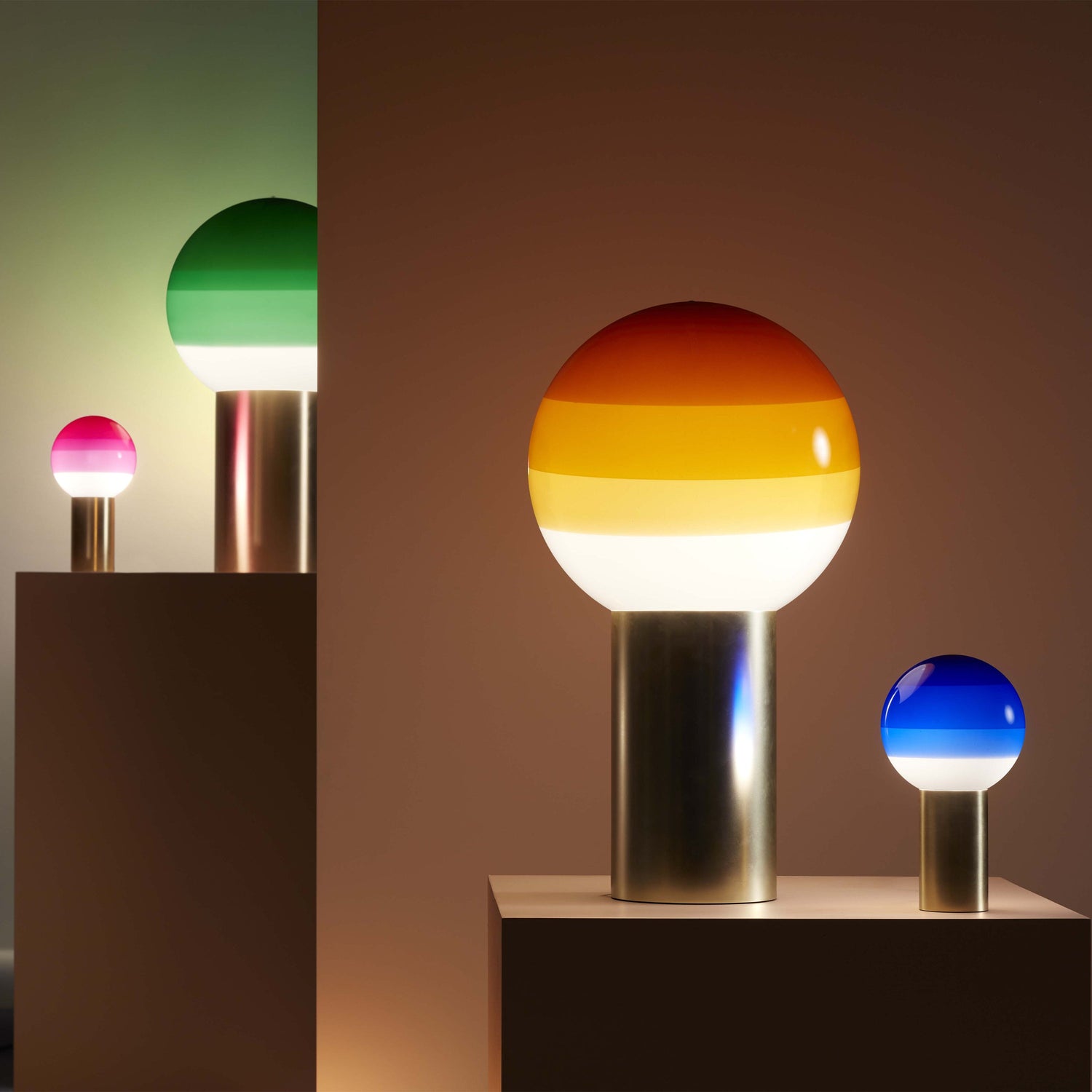 Beyond its function as a lamp, the Dipping Light seeks to excite. When it's turned on, its different shades of paint sift the light, creating a magical ambient effect. When it's off, its colored glass sphere is an object charged with beauty, and eye-catching design piece for a shelf, bedside, or table.