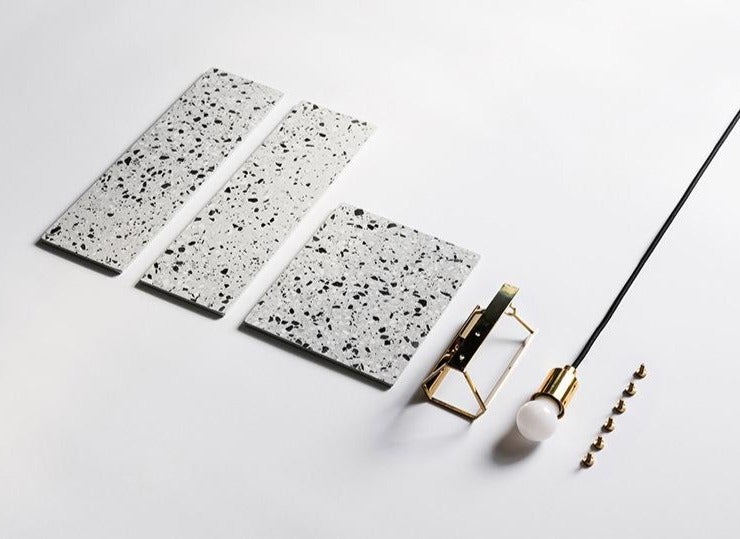 The contemporary Erisi pendant uses 3D shapes and forms to create a modern piece. This material that is usually reserved for construction use, finds here a certain nobility. The patterns that are created by the grains of this material once it  is flowed and unmolded is what gives this beautiful creation its originality. Choose from four colors to best complement your space.