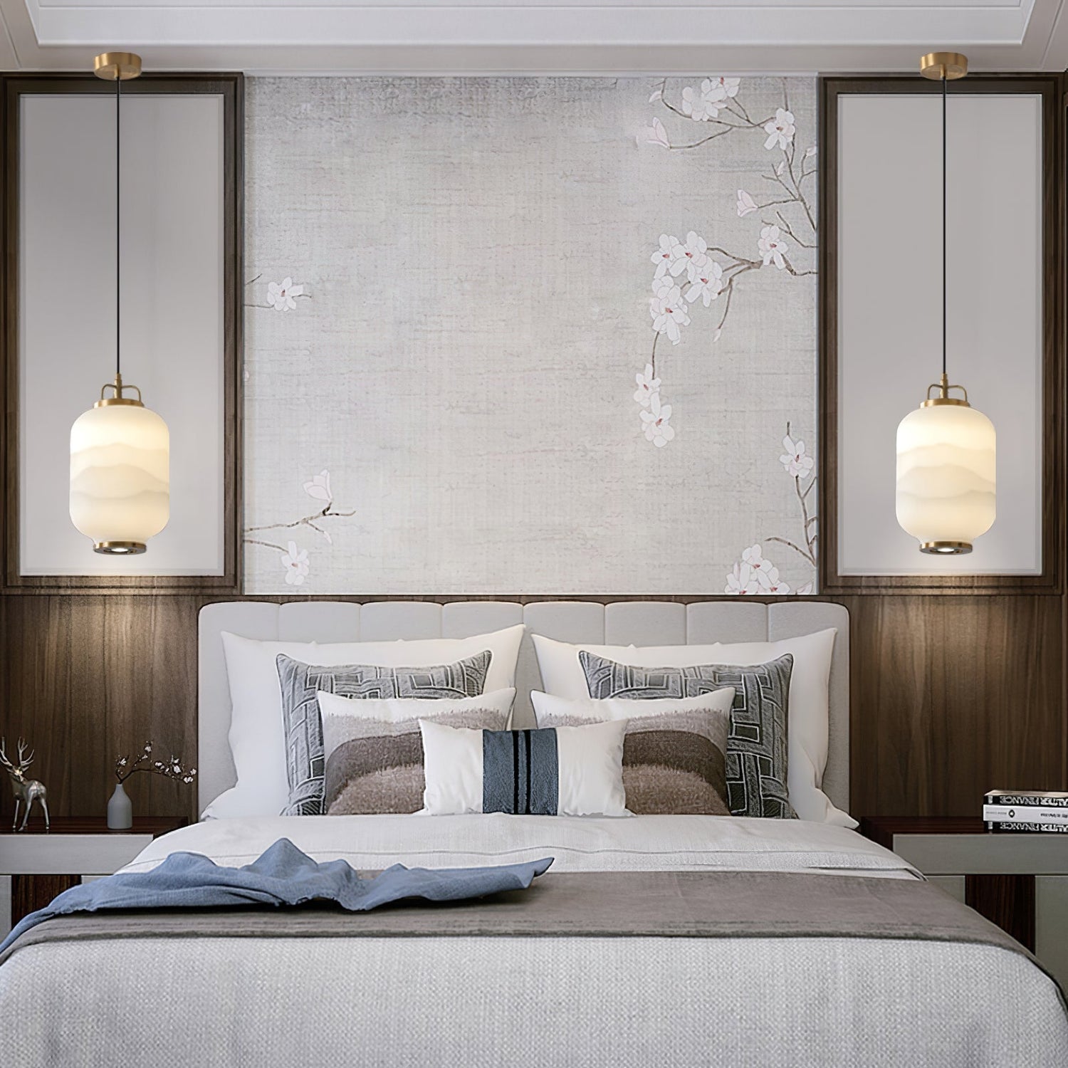 Add a sense of natural beauty to the décor of your home with the Ezio Tall Mini Glass Pendant lamp. Soft and stylish, the design of this piece was inspired by China lanterns that warmly charm the space around them. Hanging from a single hanging wire, this piece is accented by a Ink pattern glass top that upholds the satin gold shade.