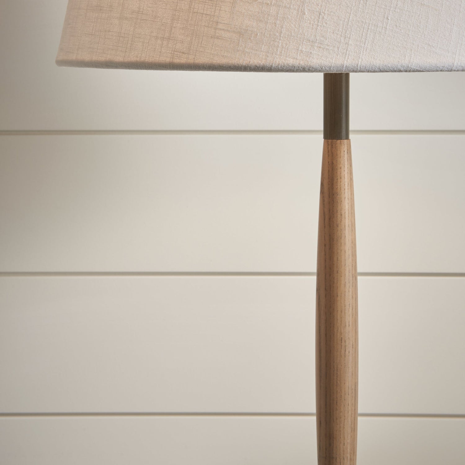 ED Ellen DeGeneres Ferrelli's rustic, two-toned finish combination of Aged Pewter metal with warm Weathered Oak Wood accents draws from the warmth of nature with a bit of rustic flair. These sleek statement lamps are available in two sizes: a 61 floor lamp or a 18 table lamp, and include a White Linen shade.
