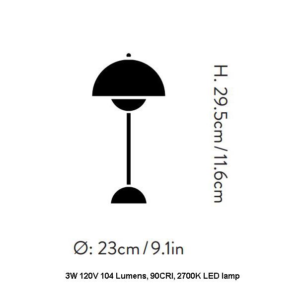Bringing a pop of color and rounded style to your desk space or favorite reading nook, the Flowerpot VP9 Portable Table Lamp from &tradition is a nod to vintage modern style, that is very here and now. Originally designed in 1968 by the master of Danish design Verner Panton, this table lamp is crafted from polycarbonate and steel in a variety of colorful finishes. Lightweight in design, this portable lamp is equipped with a USB charging cable to make moving about your space a breeze, bringing light wherever it is needed. Brighten up your favorite reading area, set the ambiance for a dinner for two, or use on either side of a master bed to balance out your space in classic modern style.