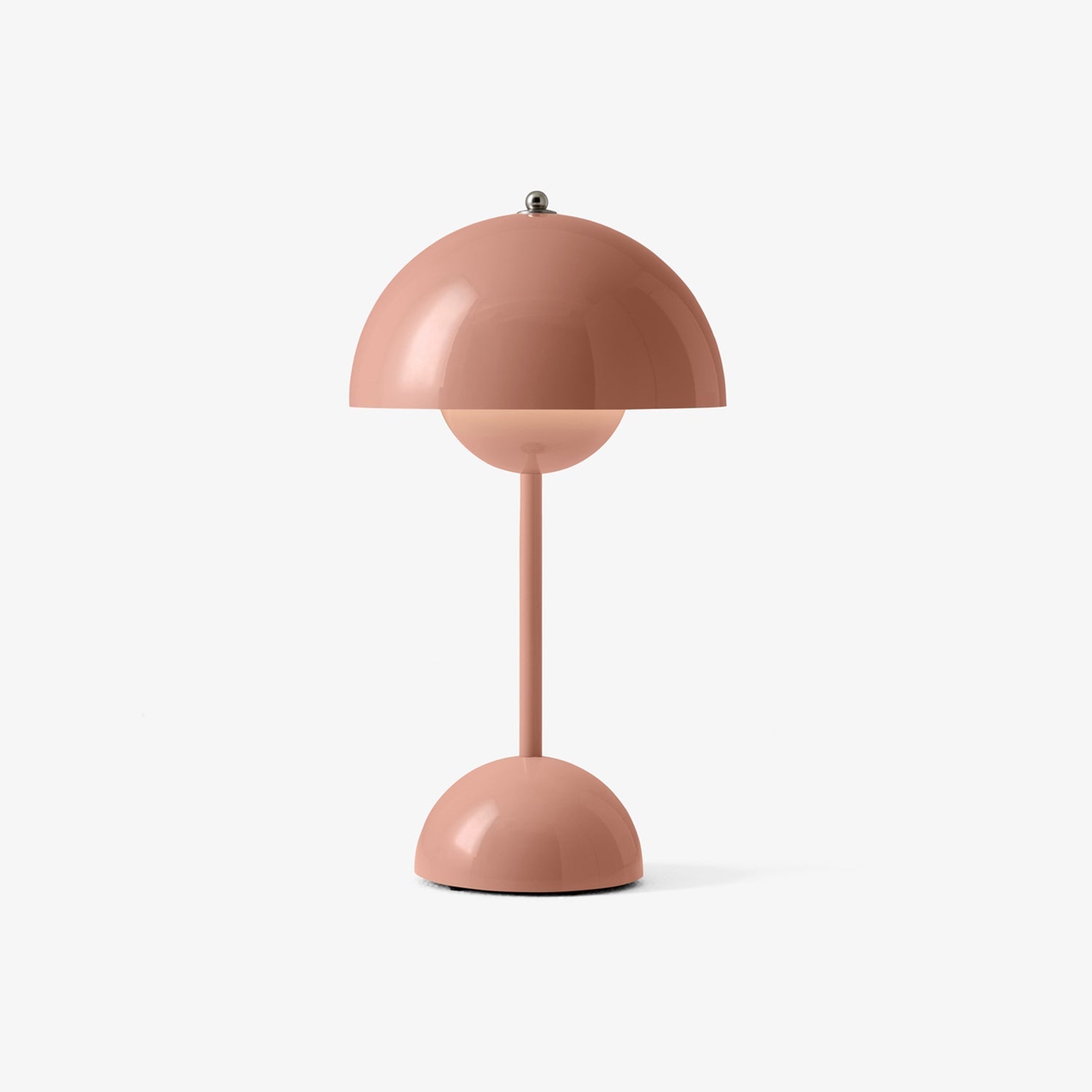 Bringing a pop of color and rounded style to your desk space or favorite reading nook, the Flowerpot VP9 Portable Table Lamp from &tradition is a nod to vintage modern style, that is very here and now. Originally designed in 1968 by the master of Danish design Verner Panton, this table lamp is crafted from polycarbonate and steel in beige red. Lightweight in design, this portable lamp is equipped with a USB charging cable to make moving about your space a breeze, bringing light wherever it is needed. Brighten up your favorite reading area, set the ambiance for a dinner for two, or use on either side of a master bed to balance out your space in classic modern style.