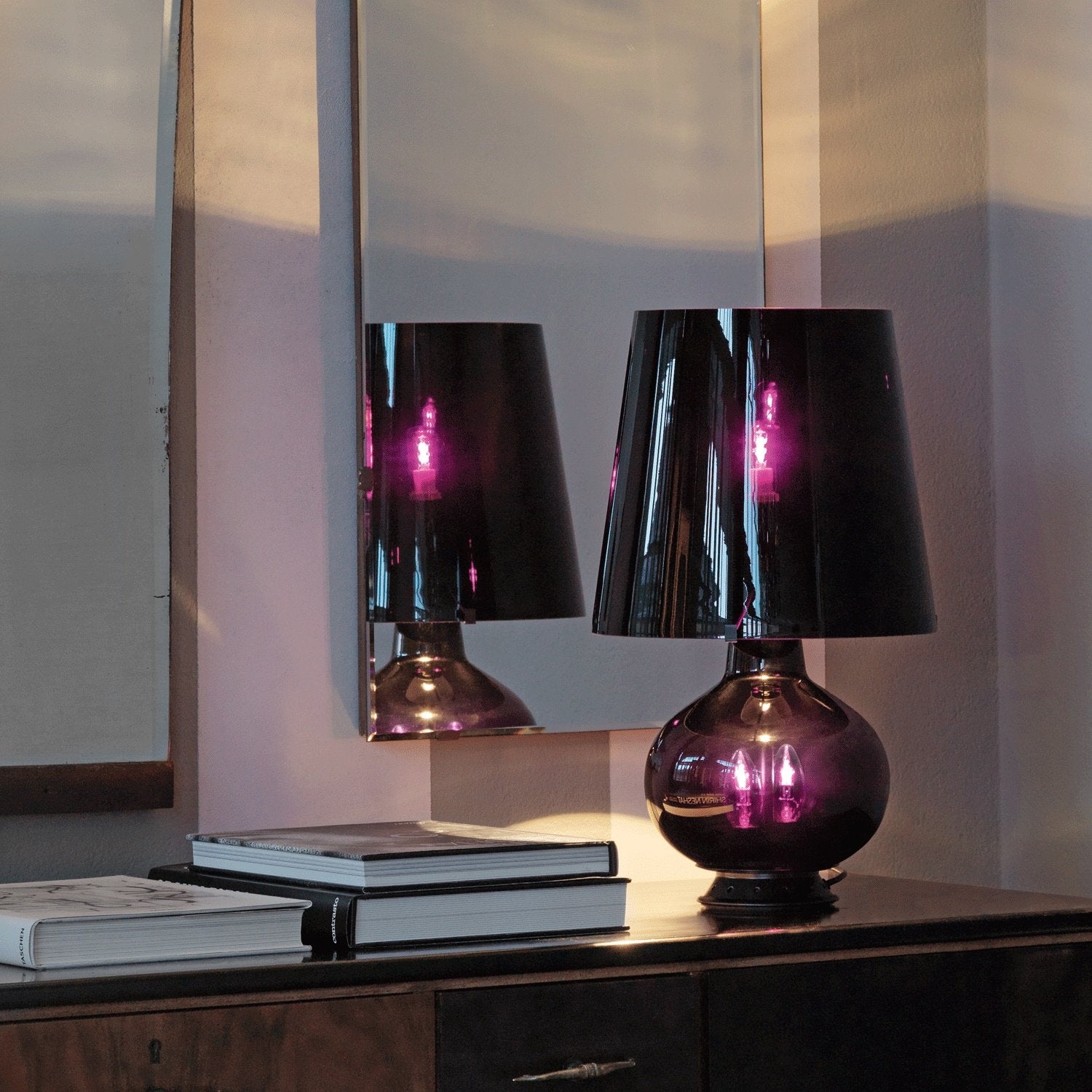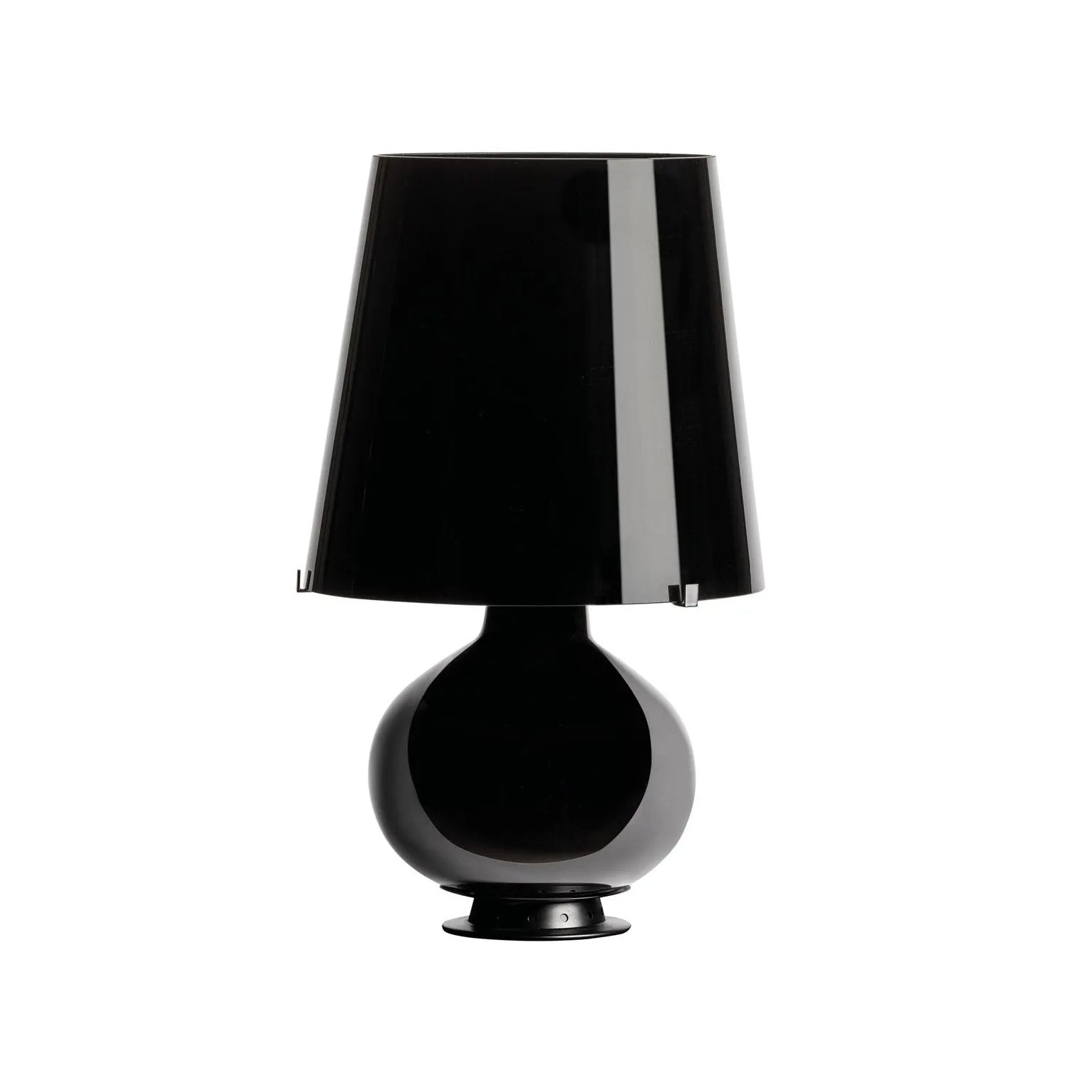 An unusual Total Black produced in 2014 to mark the 60th anniversary of Fontana. The glass-working technique used for this black blown glass version makes the lamp even more exquisite.