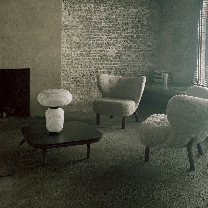 It's a hybrid concept fusing different aspects of cultures into a new design idiom. Airy, bulbous shapes crafted in ivory white rice paper with black lacquered ash accents look Asian and yet somewhat Scandinavian. Place the lamps in a modern milieu and cultural references disappear - replaced by a sense of magic. Switched off, there's a sense of serenity. Switched on, there's intimacy.