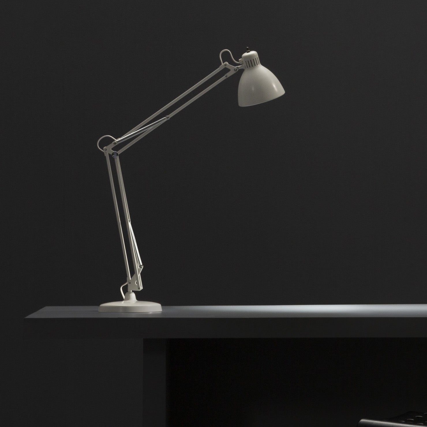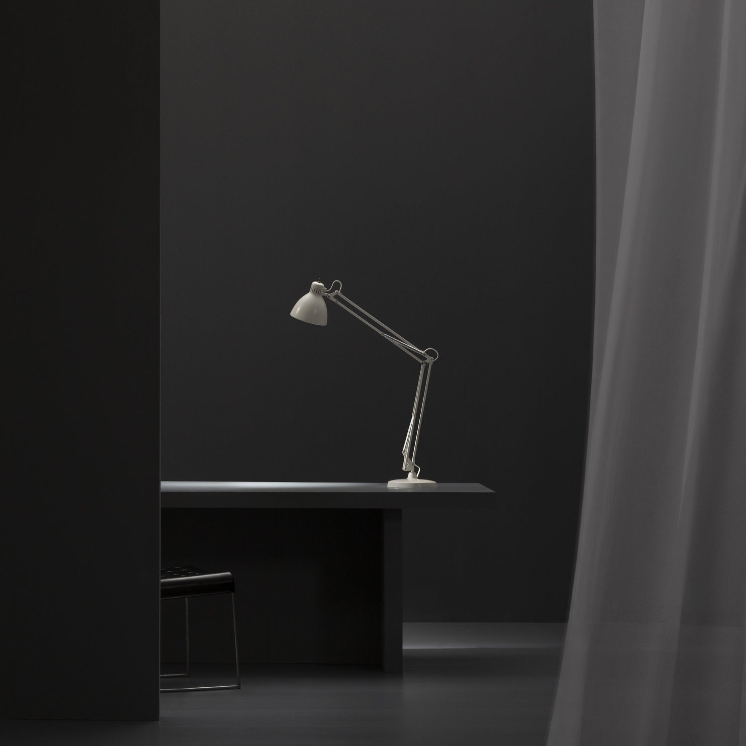 The JJ Collection creates an unprecedented freedom of movement with perfect balance thanks to its 4-spring mechanism. Its 2-arm pantograph geometry maintains the same diffuser incline throughout any movement and allows for optimal angles/positioning of the light. The 2021 Leucos update to the JJ Table Lamp includes a user replaceable integrated LED with dimmer on the diffuser and 6 standard colors with an inner white diffuser for maximum light output.