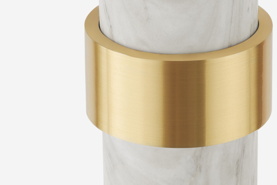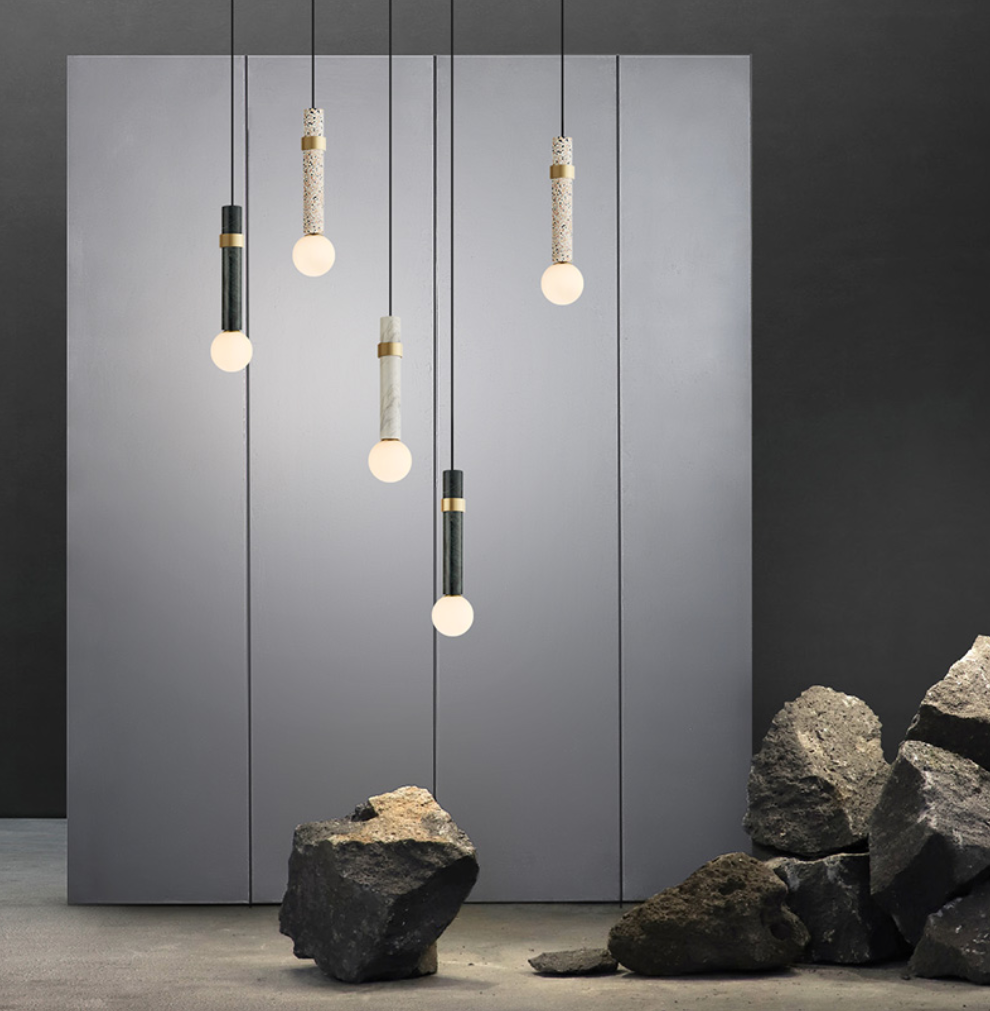 The Kumi Pendant plays with different materials providing a unique yet modern design. Made with marble and gold brass, this pendant creates an exquisite juxtaposition making it simply irresistible and a show stopping piece. Create a pleasant ambiance with minimal effort through its contemporary and sleek design. Choose from three marble colors to best represent your aesthetic.
