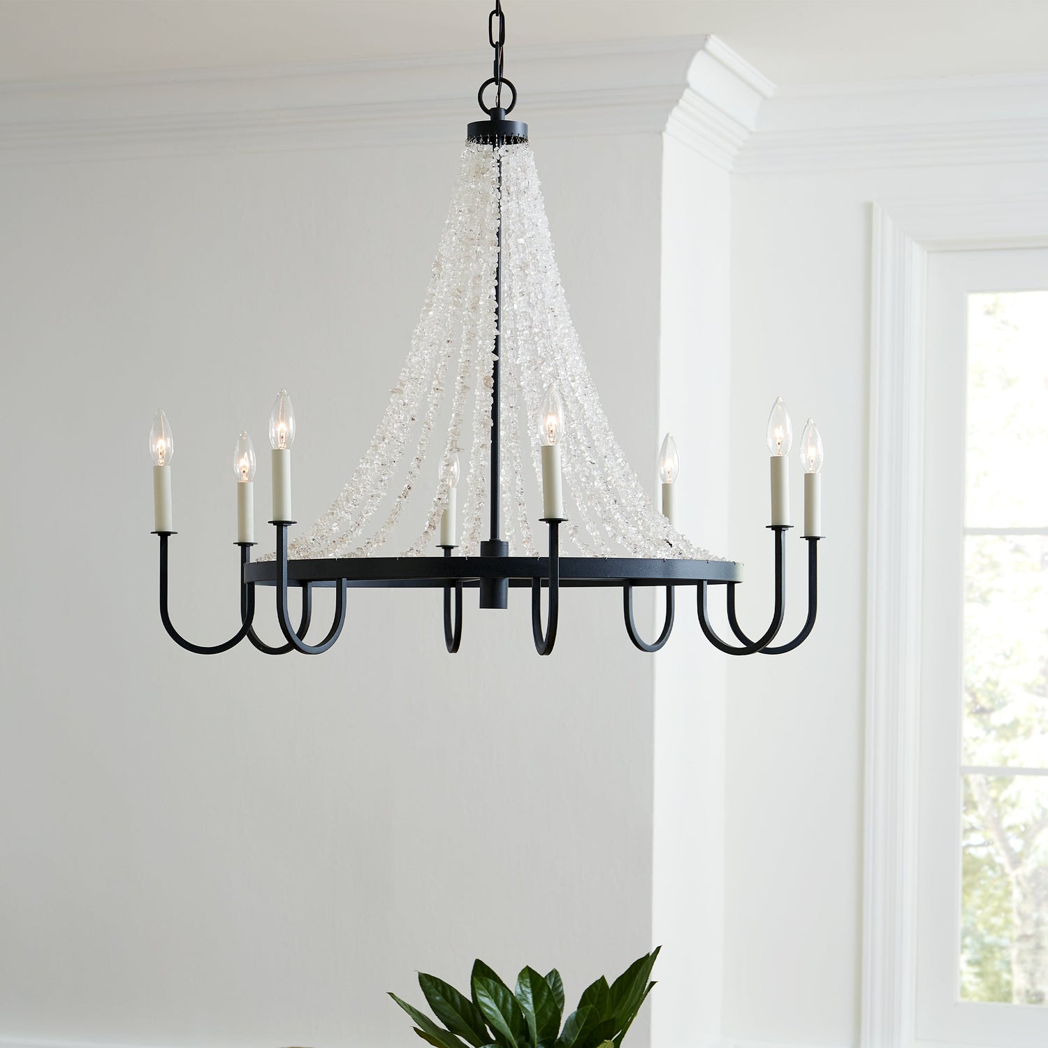 Alexa Hampton Leon from AH by Alexa Hampton offers a luminous design framed in iron with a Dark Weathered Zinc or Salt Mist finish and embellished with rows of shimmering beads. Alexa Hampton Leon single tier chandelier in enhances the beauty of your home with ample light and style to match today's trends.