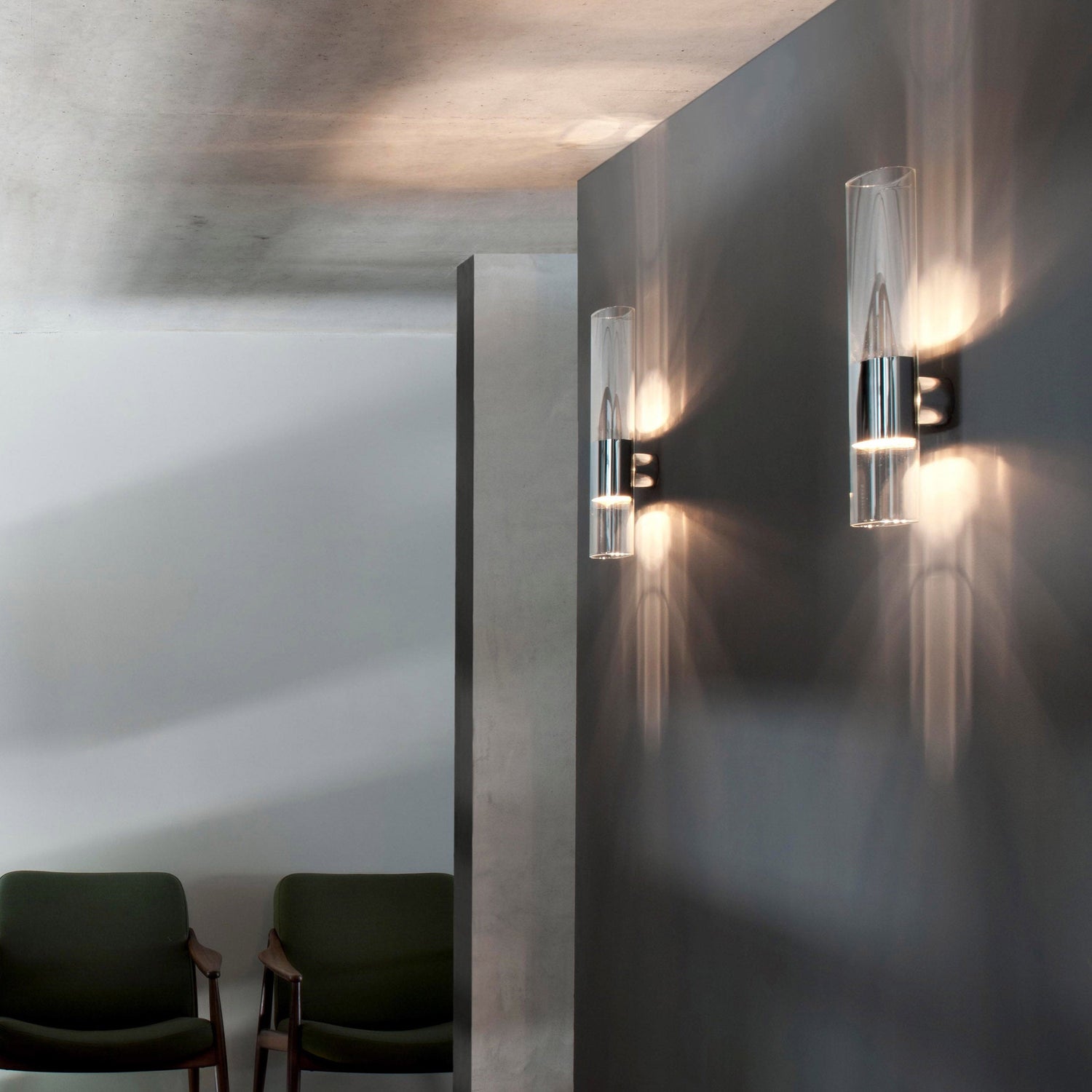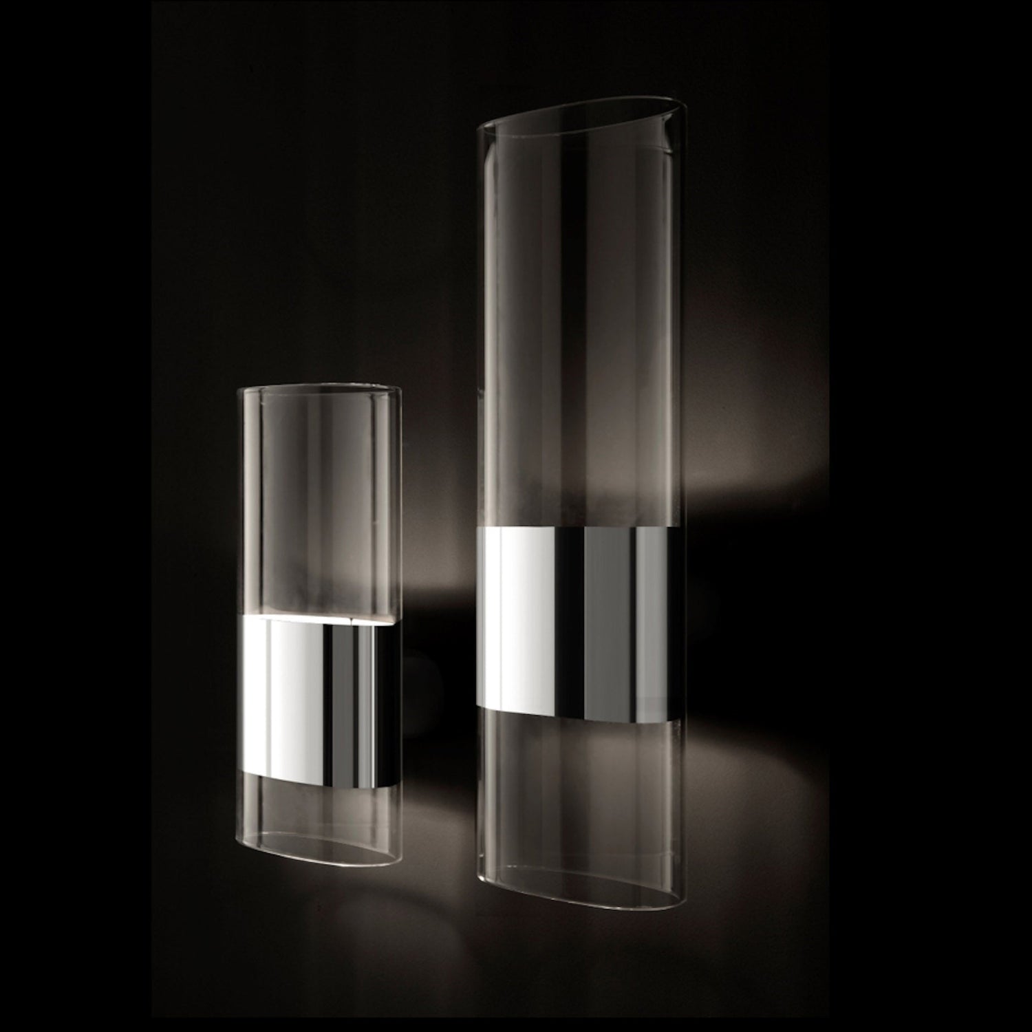 Simple and sophisticated, ready to bring perfectly diffused light to your interior wall space, the Line Wall Light from Oluce offers a minimalist form that makes a lasting impression. Showcasing strong character crafted from special pyrex glass and a partial polished aluminum coating, this wall sconce offers two light sources that diffuse both upwards and downwards, for a pleasantly accented glow in every room. Flank either side of a living room fireplace for a welcome touch of brightness as you recline and relax, or use along a dark hallway or stairway to ensure guests can effortlessly move about your home.